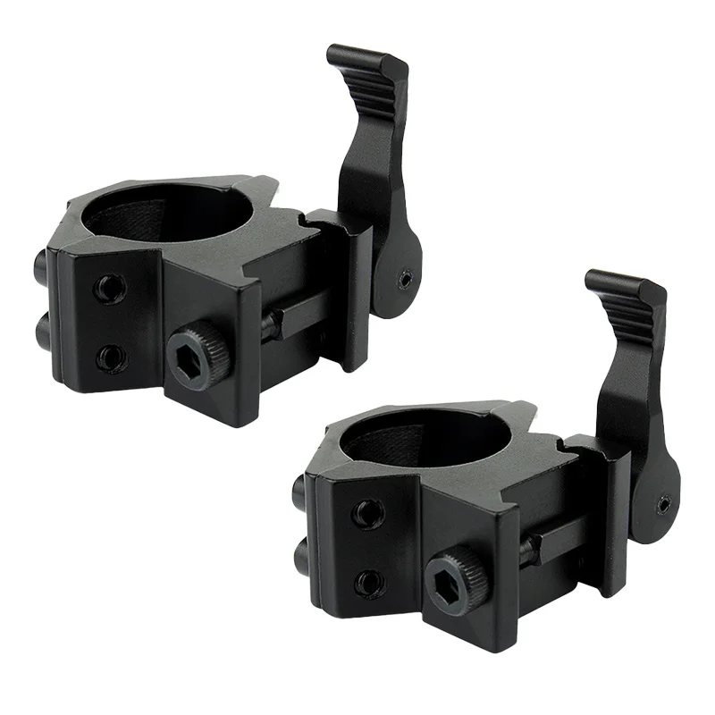 Anillos de montaje de alcance de liberación rápida de perfil de 1,1 "y 30mm. Añade o quita los anillos internos para cambiar de 1 "y 30mm de diámetro. Nuestros anillos de alcance se ajustan a los rieles Weaver Picatinny.