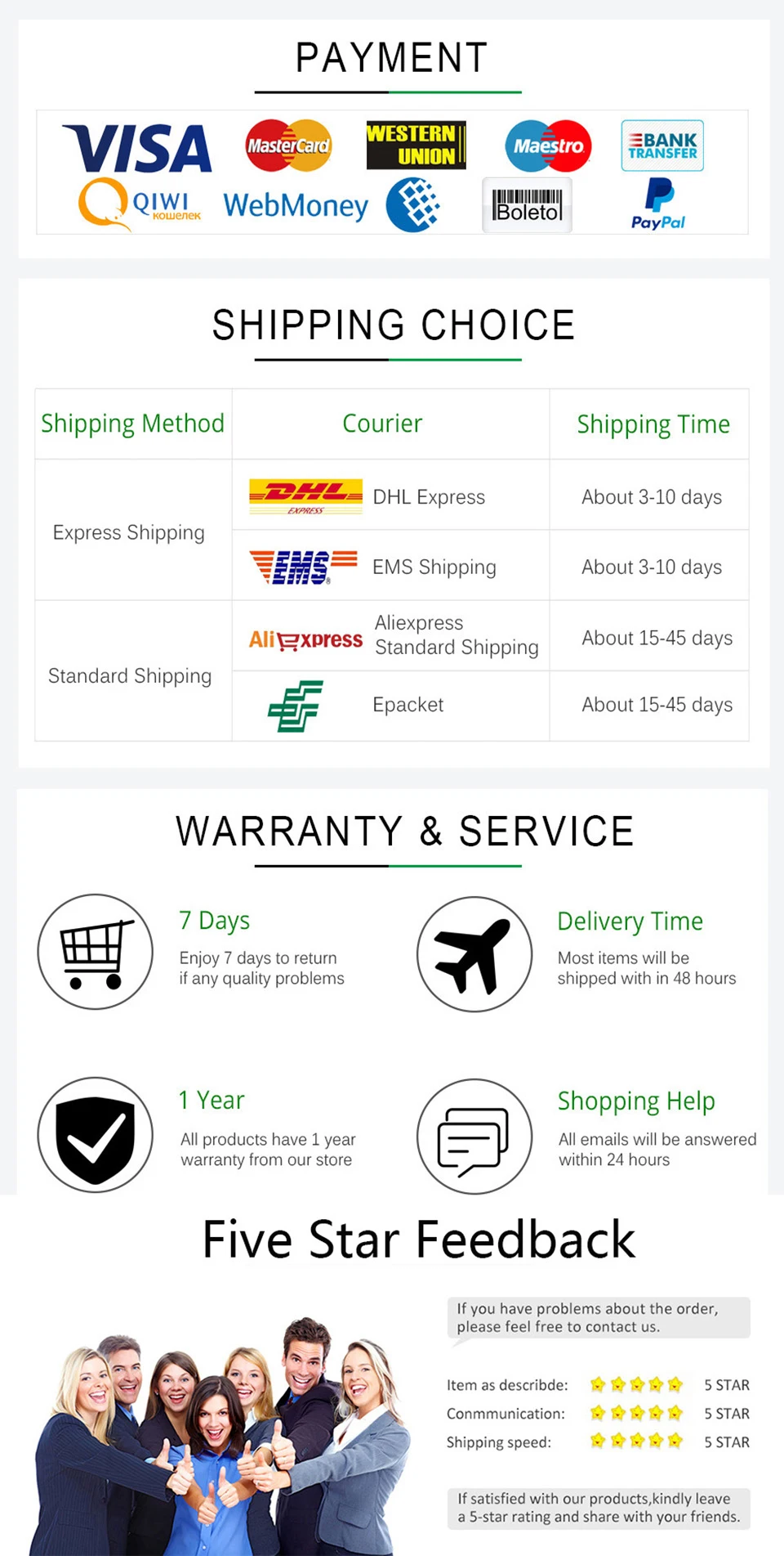 2) Si tiene alguna pregunta sobre SerVice o productos, contáctenos libremente, estaremos sinceramente satisfacerlo, es nuestra responsabilidad, PIS no deje comentarios negativos sin contactarnos.Gracias. Una mala reseña y una disputa no pueden resolver nada.