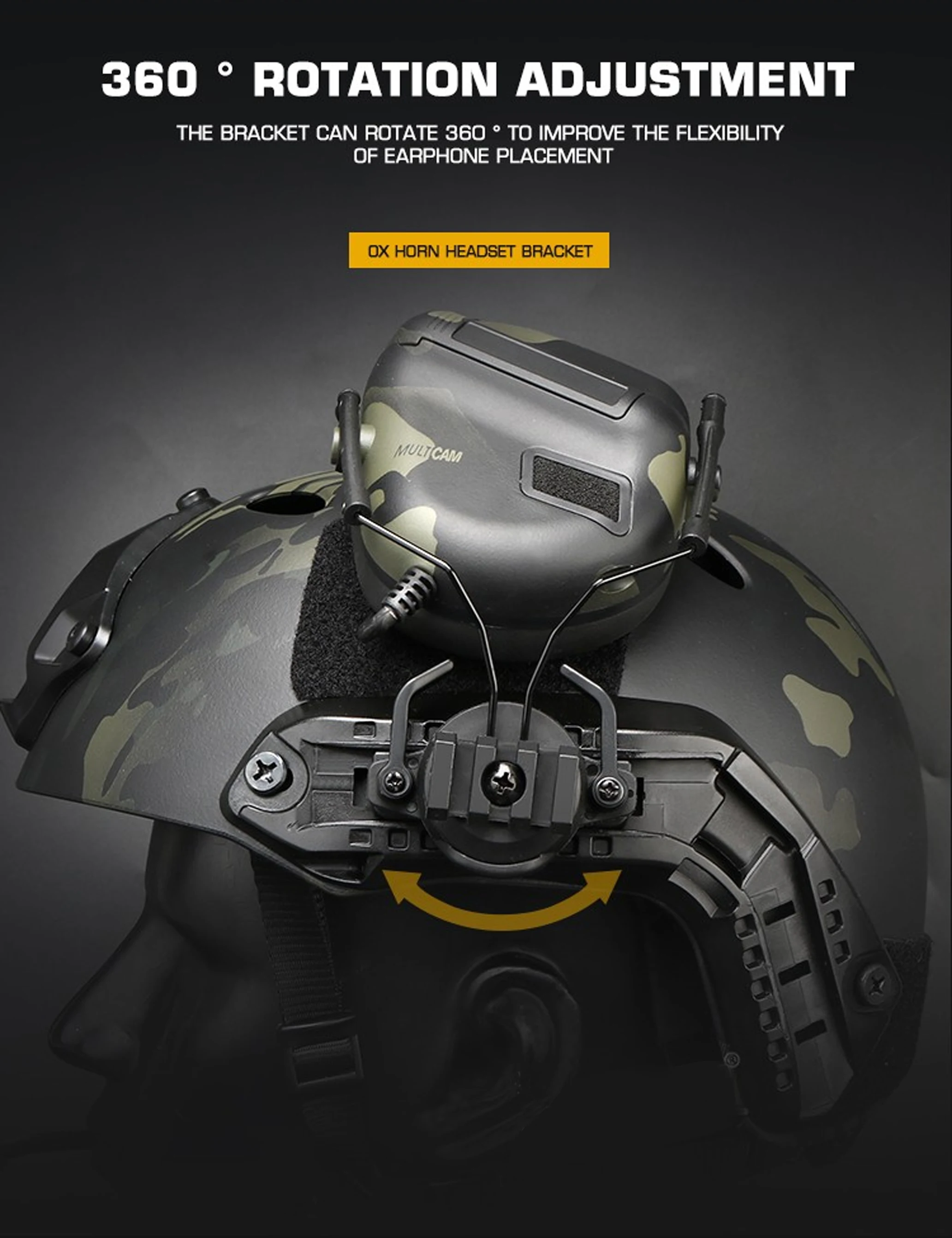 ACCIONUNCIÓN Adaptador de auriculares con riel de arco giratorio