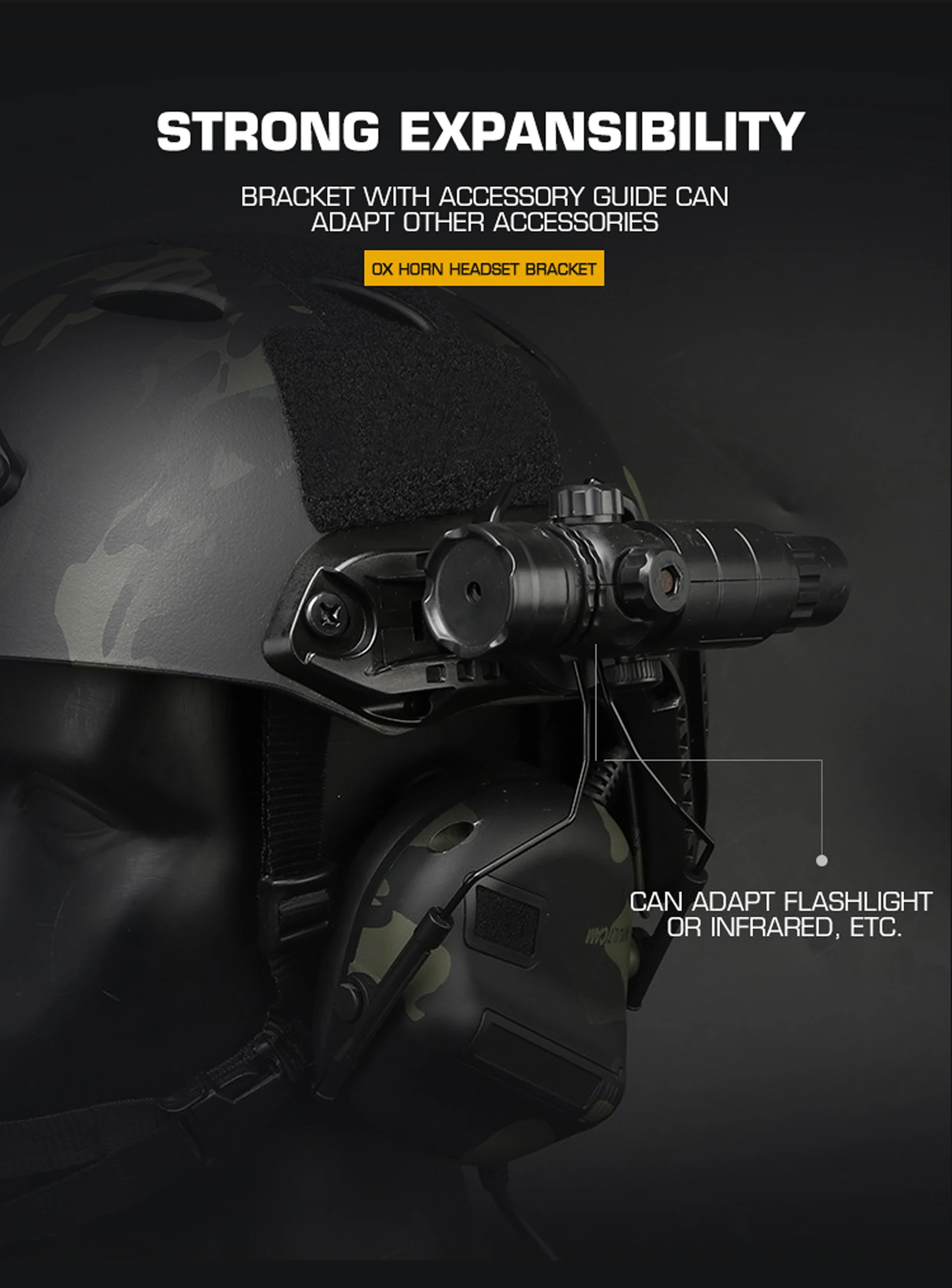 2.Riel adaptador: Riel para casco de 19-21 mm totalmente adaptable.