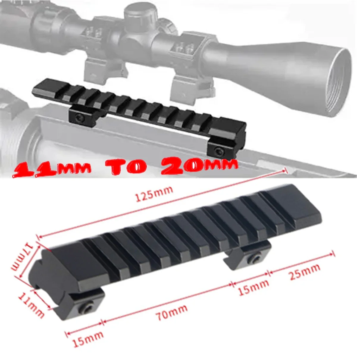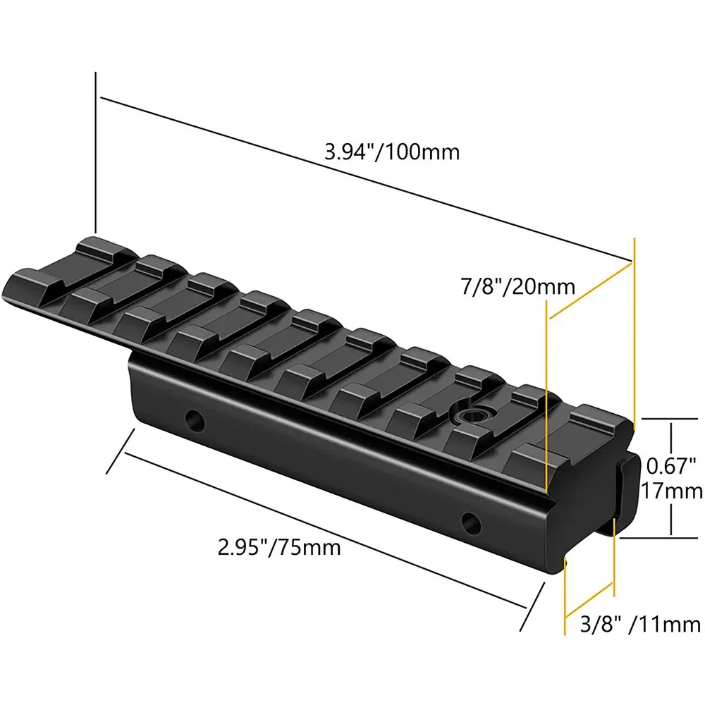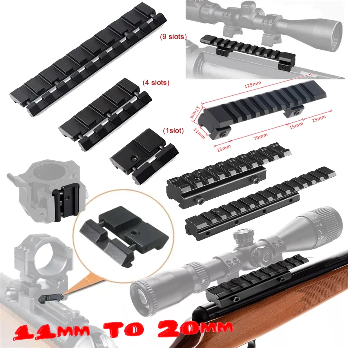 Soportes para Rifle tácticos de 25mm, 45mm, 95mm, 125mm de longitud, 9/14 ranuras, 11mm a 20mm, alcance Picatinny, Base de montaje adaptadora de riel de cola de milano