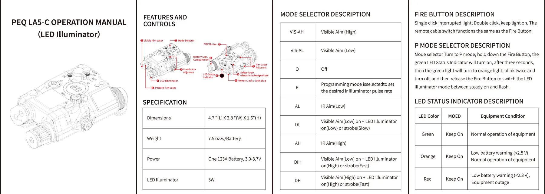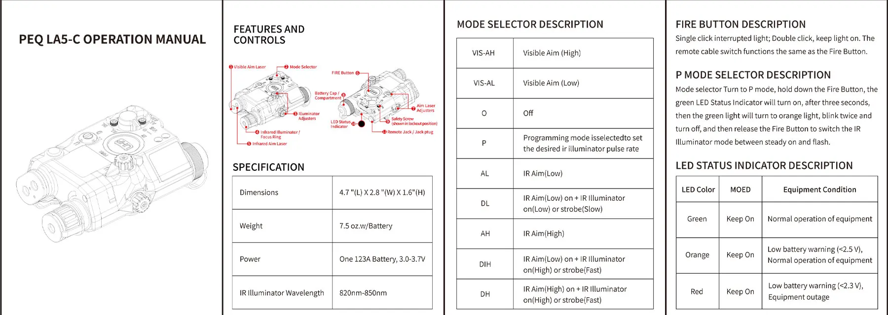 SOTAC GEAR LA5-C táctico luz LED IR ajustable láser rojo verde láser IR caza luz de explorador al aire libre