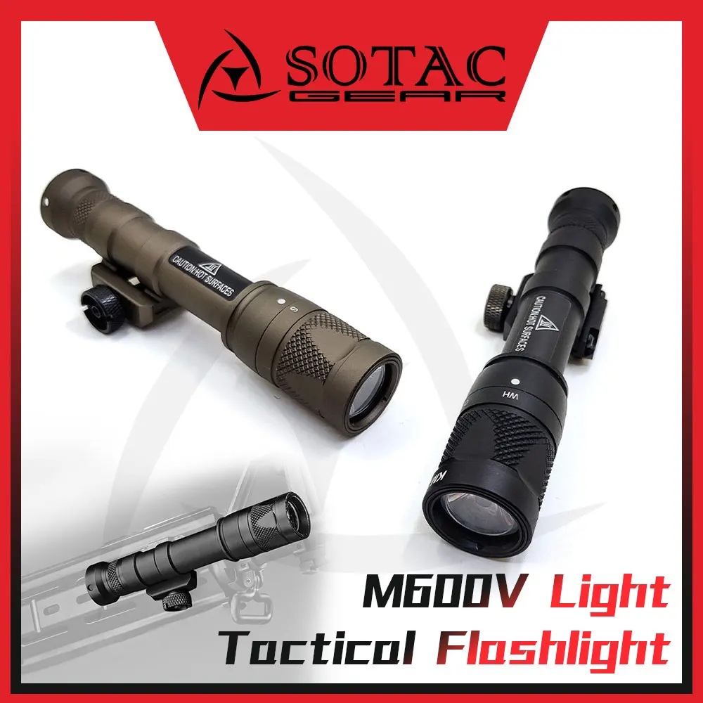 4. La robusta linterna M600V se sujeta de forma fácil y segura a los rieles a través de su abrazadera de tornillo de mariposa integral y se activa haciendo clic en el interruptor de la tapa trasera del botón.