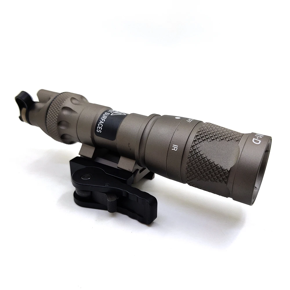 5. Luz de exploración IR M622V con montaje de liberación QD. El montaje QD de desconexión rápida se conecta de forma rápida y segura a cualquier riel y se activa haciendo clic en el interruptor de tapa trasera del botón.