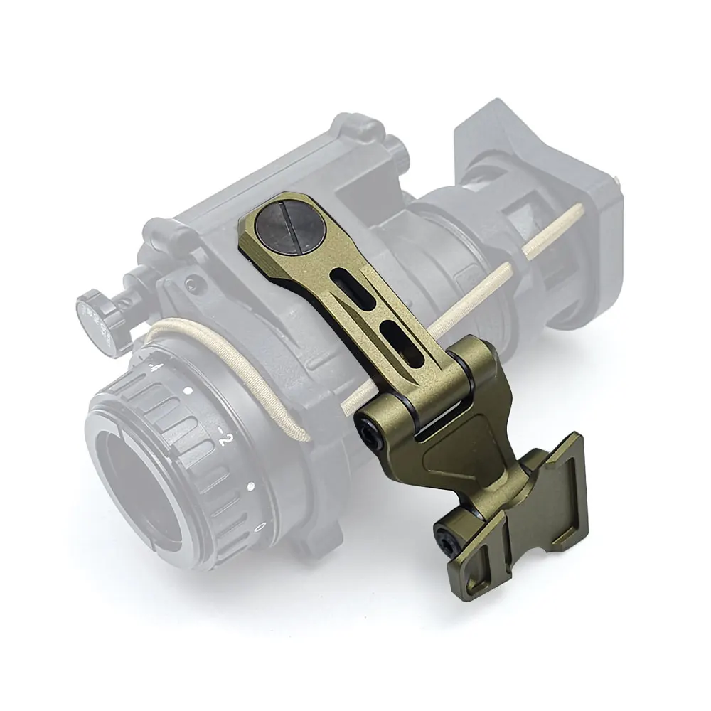 It can be easily mounted and dismounted from the PVS-14 monocular by means of a thumb screw, and allows the operator to select the height and angle for comfort with the ability to make fine adjustments to the arm.