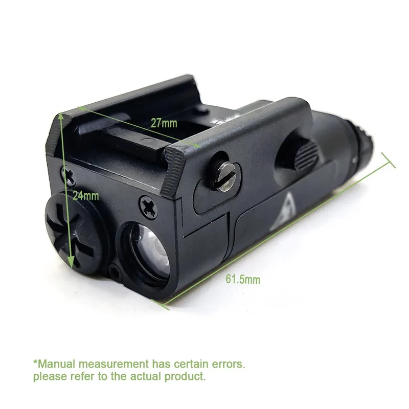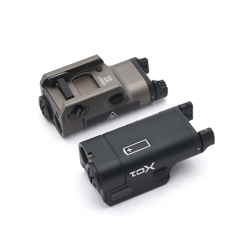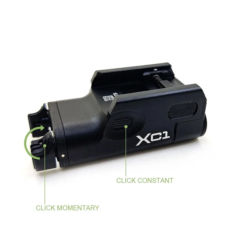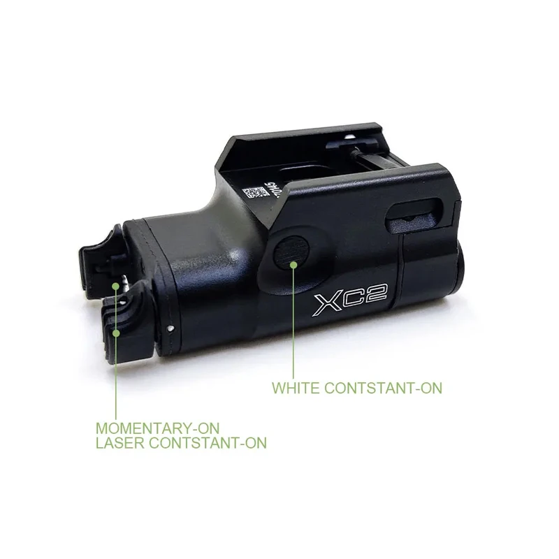 4. Mantenga presionado cualquiera de los interruptores de palanca para la activación momentánea y suelte para apagar; El interruptor selector de modo cuenta con un modo de luz y un modo solo láser;