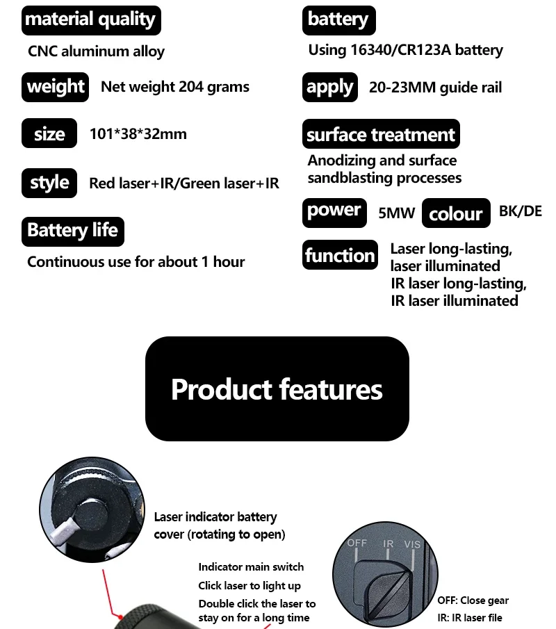 SOTAC linterna táctica de Metal CQBL 1 Mini, indicador IR rojo y verde, láser, arma de caza, explorador, interruptor de Control de luz, accesorio