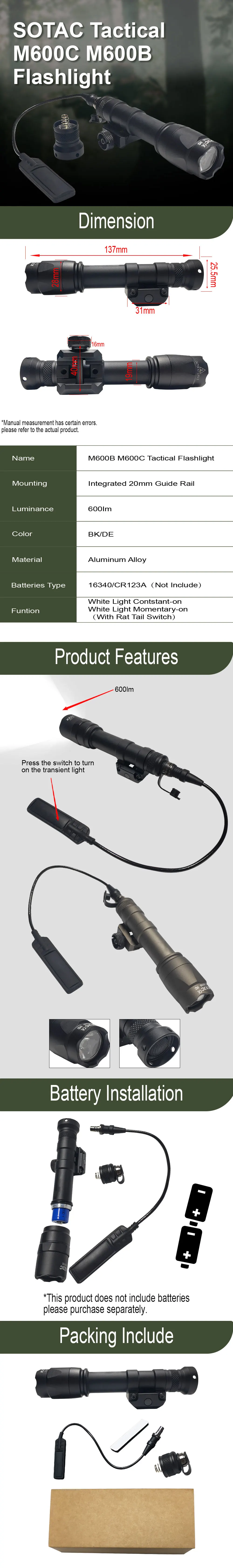 2.Viene con un interruptor de presión remoto y un interruptor de botón trasero, controla los modos de encendido momentáneo y constante respectivamente.Debido a diversas necesidades tácticas, es esencial la flexibilidad en el campo de batalla real.