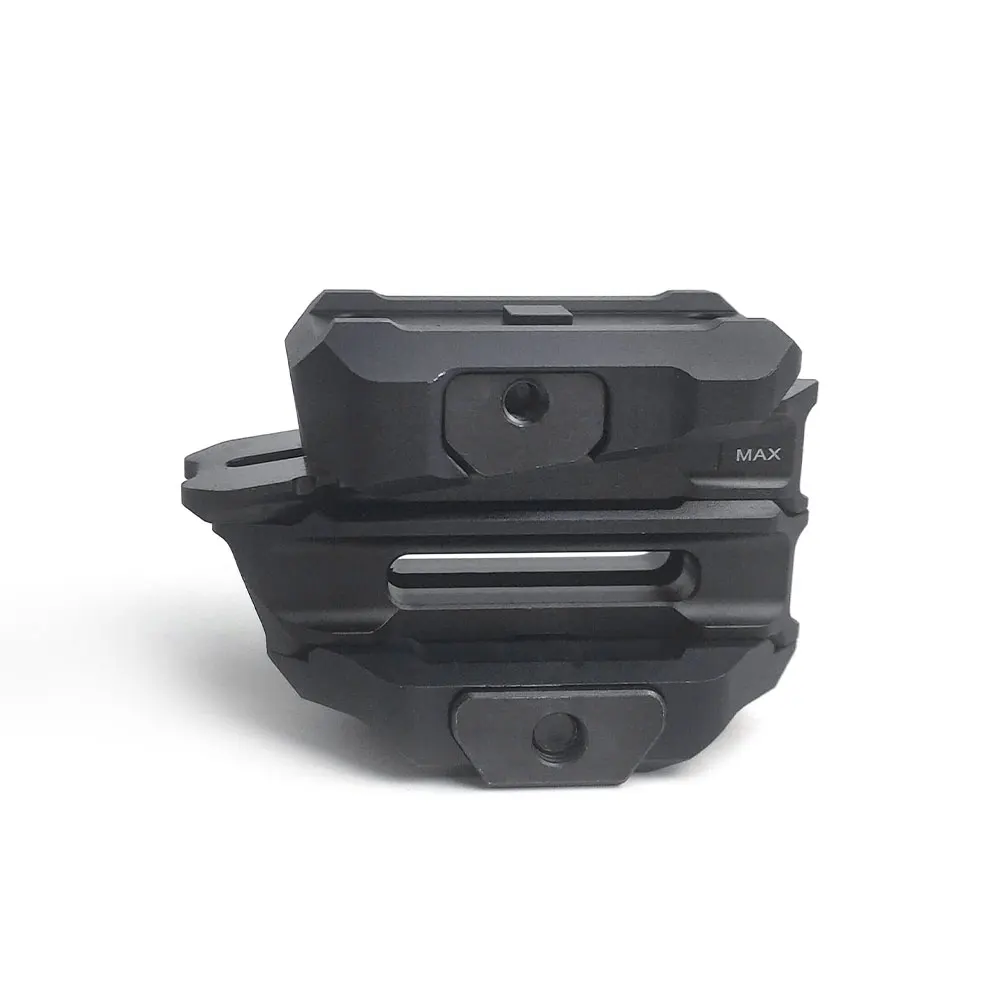 Soporte para miras de punto rojo, con ajuste de altura variable. Diseñado para ser montado en un riel Picatinny. Equipado con la popular huella estándar. El rango de ajuste es de 1/3 cm a 4,9 cm. Gracias a las muescas en el riel, el ajuste es preciso y gradual. Hecho de aluminio, el diseño ha sido especialmente refinado para mantener el cero incluso después de la reinstalación.