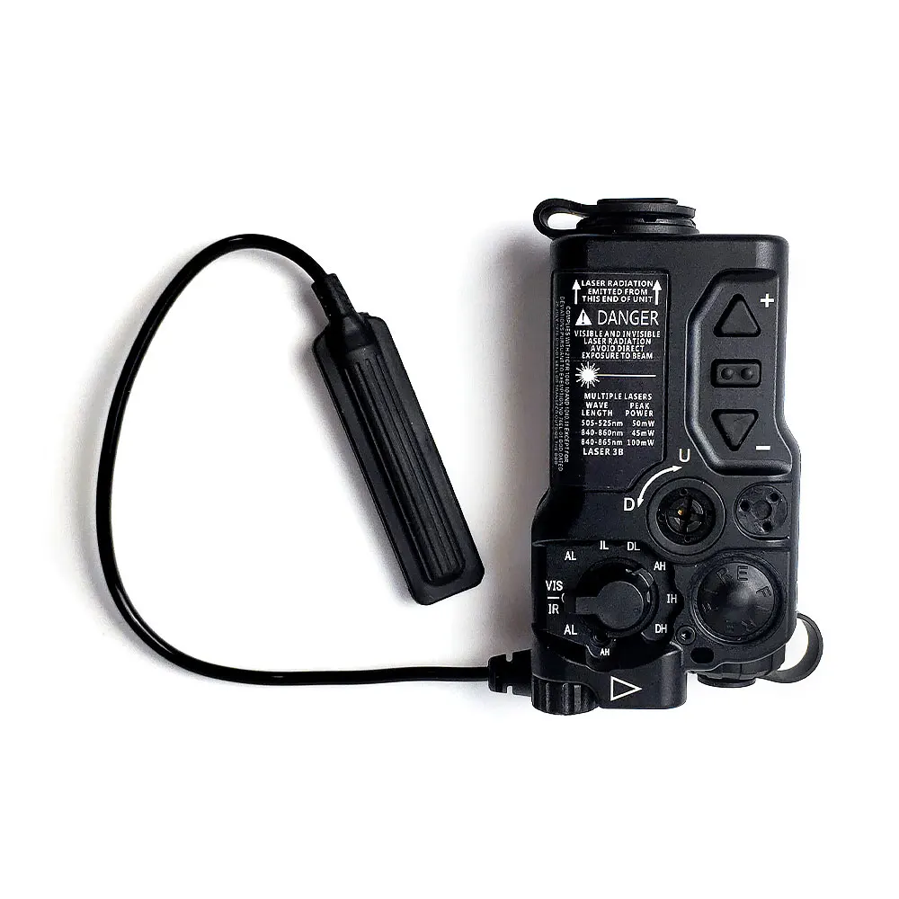 The RAID-X (Ruggedized Device) offers smaller, lighter and superior Powered by one (1) CR123 3V /16340(no include )battery, the RAID-X features a red or green visible laser, infrared (IR) laser, with one windage and elevation adjustment. In addition to size and weight reduction, the RAID-X boasts ultimate beam clarity and uniformity aiding in target identification and situational awareness.An ergonomically located focus wheel allows rapid adjustment of the Laser divergence for various distances and mission requirements. The RAID-X securely mounts low to picatinny rails using two shock nuts.