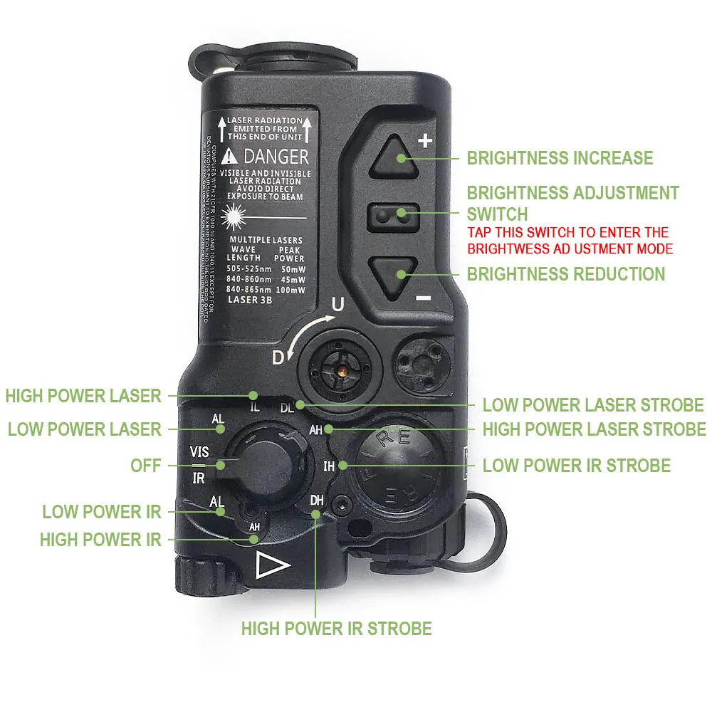 Mode:Laser contstant-on,Laser momentary-on,Laser strobe,IR laser contstant-on,IR laser momentary-on,IR laser strobe