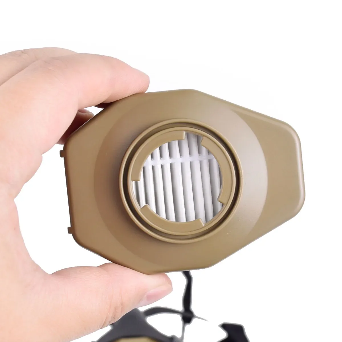 Filtro reemplazable con una versión más grande que ofrece más volumen, lo que facilita la respiración.
