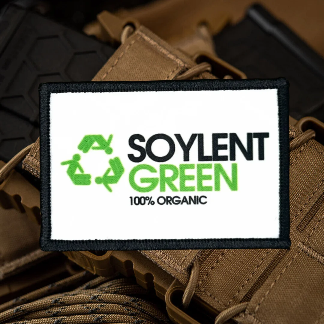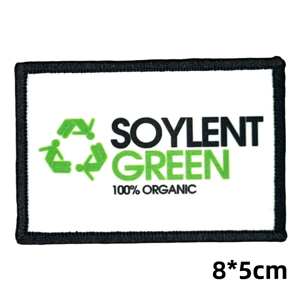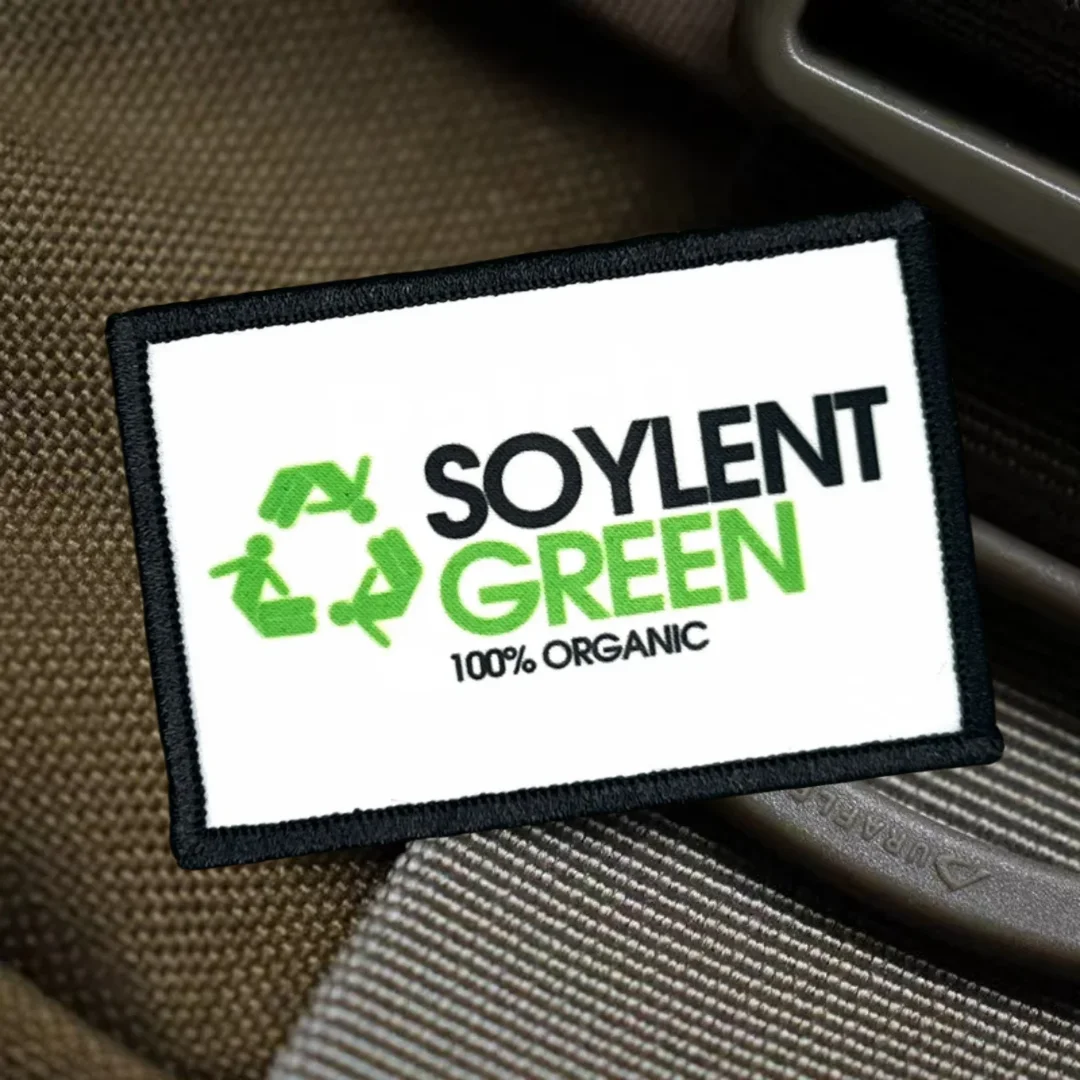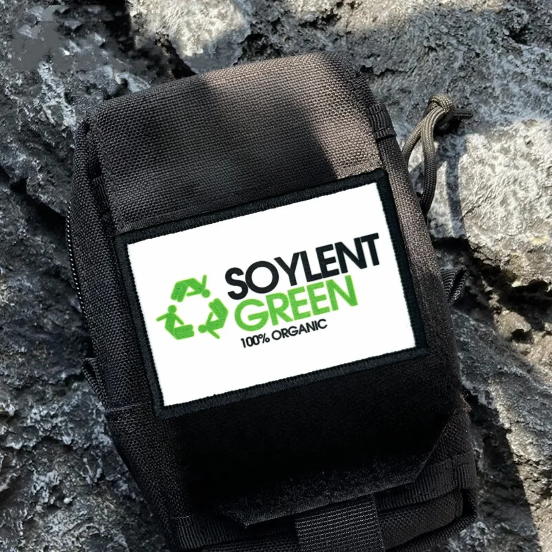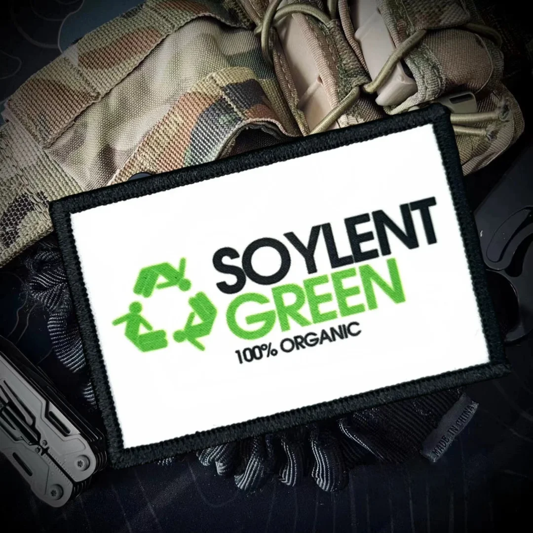 Parche táctico de moral verde Soylent, Parche de gancho y bucle impreso divertido, insignia del ejército militar para exteriores, brazalete, pegatinas para mochila
