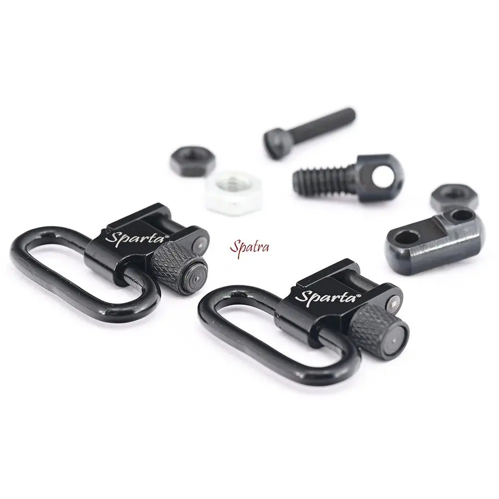 Los giratorios Sparta Quick Detachable Match Target Sling (SSS-0902) son un conjunto de giratorios de eslinga de alta calidad que son perfectos para tiro al blanco y caza. Estos giratorios están hechos de acero duradero y cuentan con un mecanismo de desmontaje rápido que permite colocar y quitar fácilmente el cabestrillo. Los giratorios SSS-0902 también son compatibles con QD, por lo que puede usarlos con cualquier cabestrillo compatible con QD.