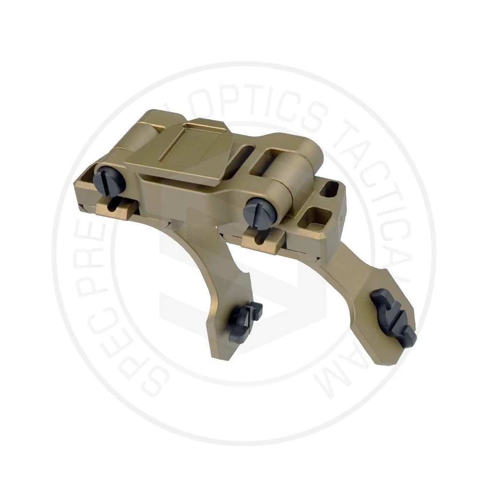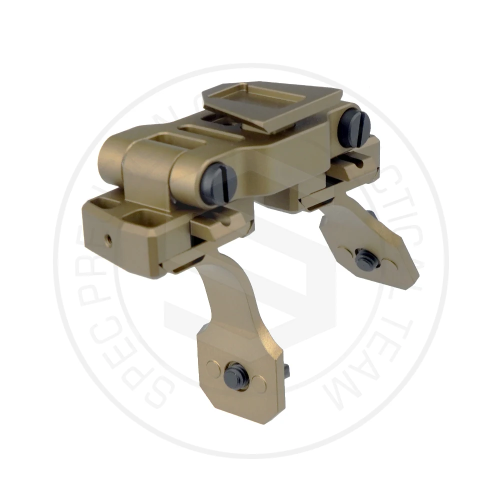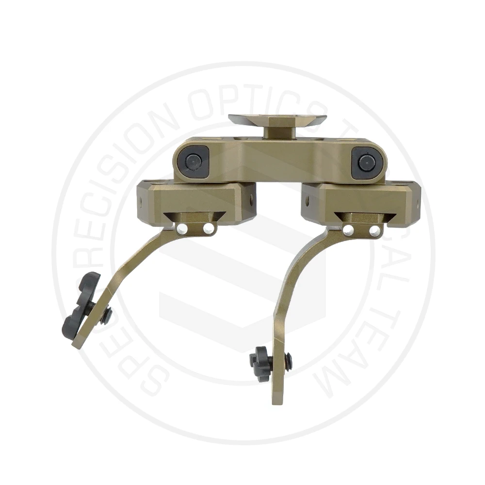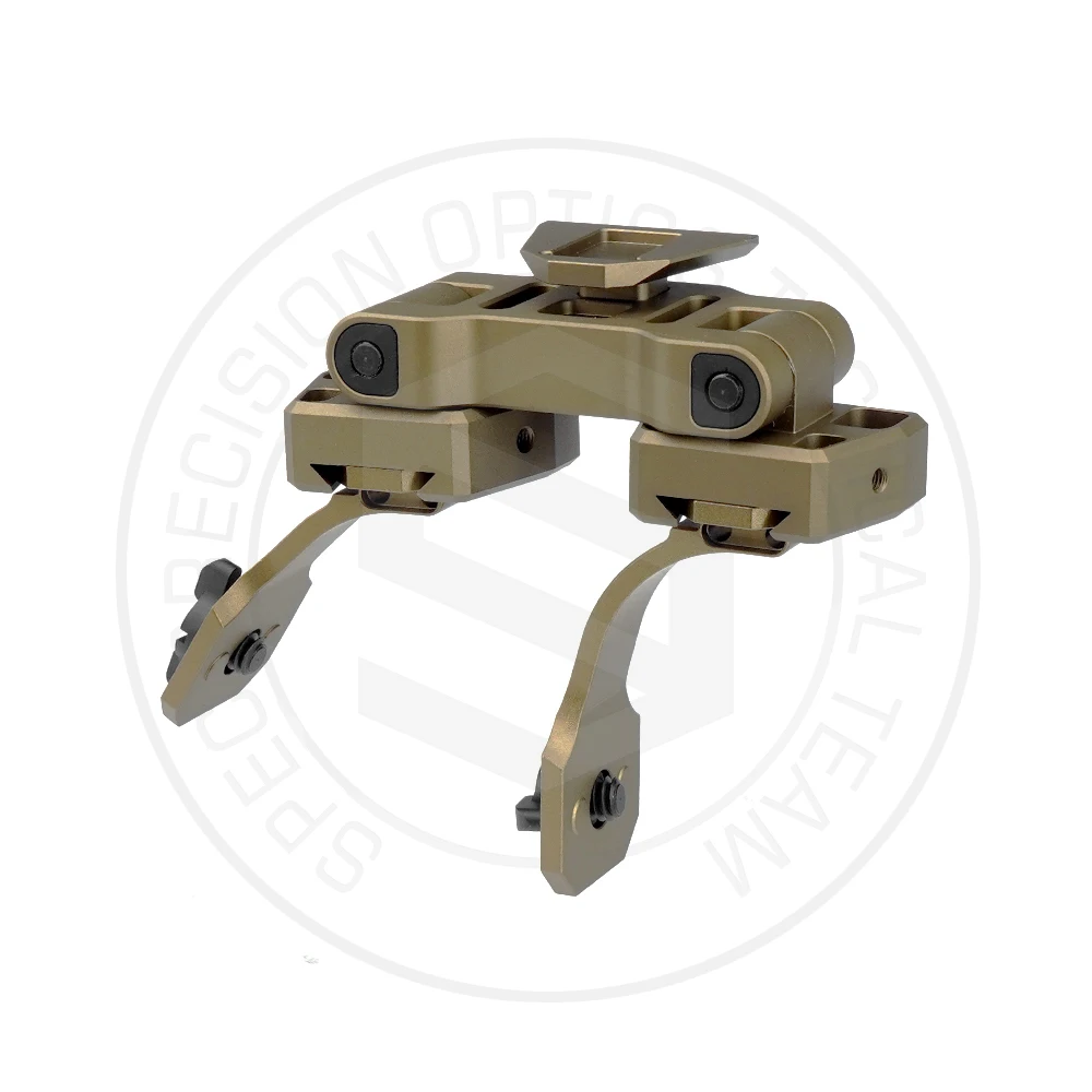 El soporte para casco D-14 Night Vision ofrece redundancia, flexibilidad y facilidad de mantenimiento.A diferencia de un sistema PVS-15 dedicado, los PVS-14 duales brindan al usuario dos fuentes de alimentación separadas, lo que disminuye el potencial de falla completa del sistema.