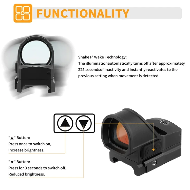 Add a coated tiny LED glass to protect the red dot transmitter, without any effect on the red dot effect, you will ALWAYS have the crispest dot possible, and forming a closed space, IPX7 fully submersible waterproof.