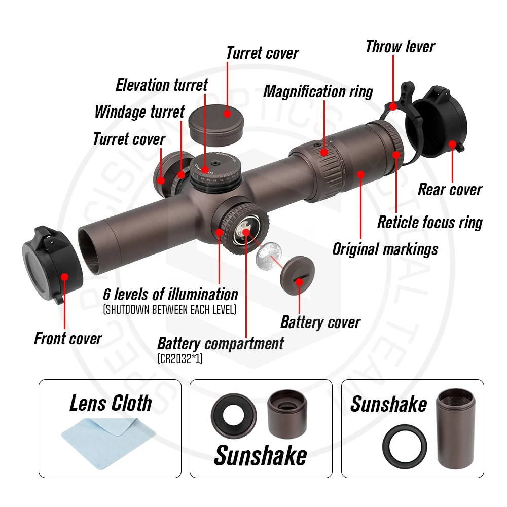 Campo de visión 1x: aproximadamente 116 pies a 100 yardas