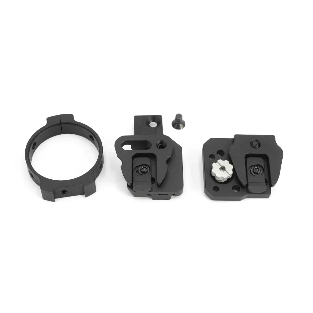 El juego de zapatas anverso (OSS) está diseñado para aplicaciones que requieren que el (y varios módulos derivados) se emparejen u orienten para una variedad de aplicaciones. El OSS maximiza el uso de prácticamente cualquier cola de milano BNVD estándar como receptor host. El OSS se vende como un conjunto, que incluye un zapato de casco superior flotante y un zapato de arma inferior. La Zapata superior se sujeta alrededor del anillo de bloqueo de la lente del objetivo del PVS-14. Para instalarlo, coloque el tornillo de la abrazadera de modo que sea accesible con la llave entre la tapa de la batería y la perilla de control de ganancia (nos resulta más fácil desenroscar la tapa de la batería antes de la instalación). El zapato inferior simplemente se enrosca en el inserto de 1/4-20 "en el cuerpo de la PVS-14. Cada interfaz se puede instalar en diferentes tipos de interfaz, lo que les permite emparejarse con el puente universal KVC. También se pueden instalar en una sola PVS-14, lo que permite que el monocular se mueva del JAMR al KVC para el montaje de la cabeza o el arma.