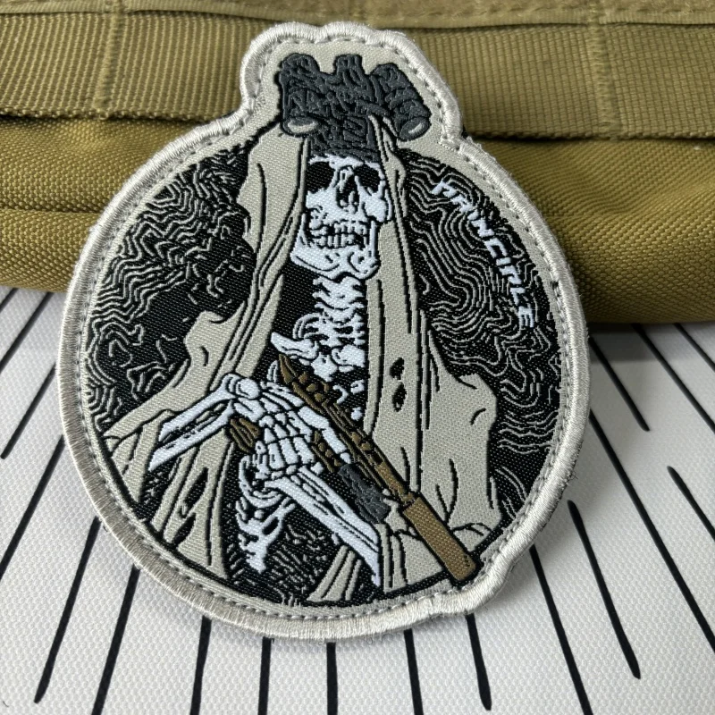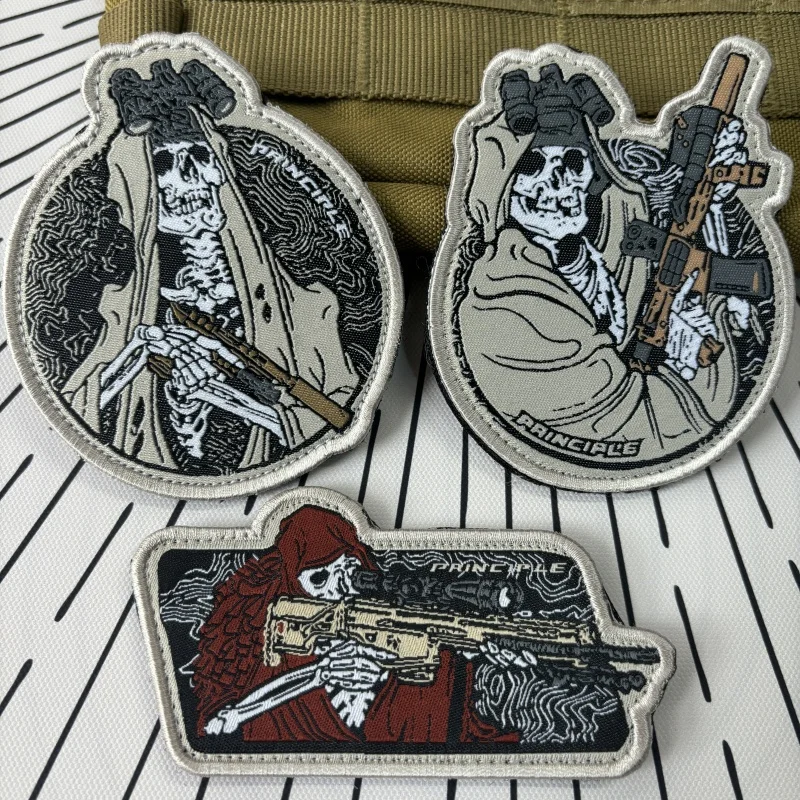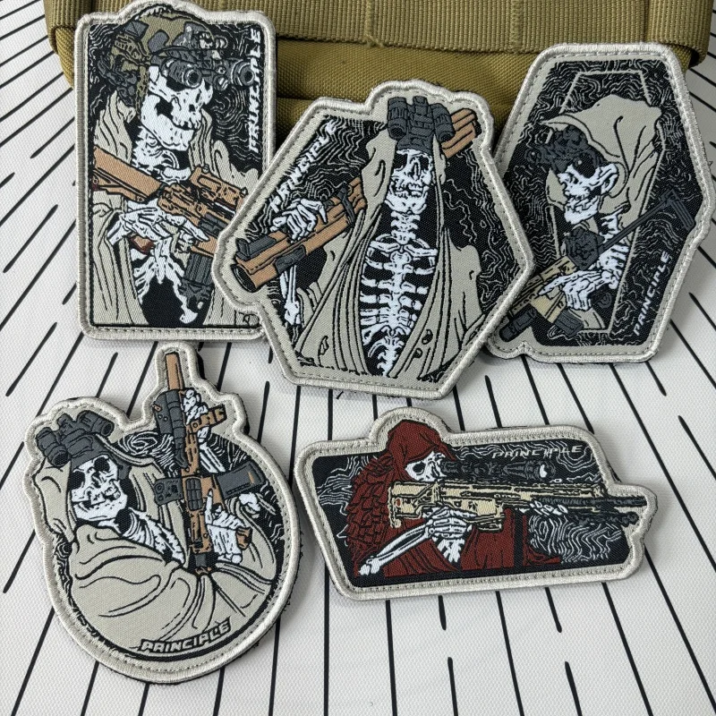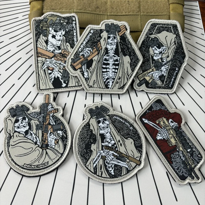 Insignias de moral Spectre Squad, parches bordados de gancho y bucle, pegatinas de mochila de combate táctico, guerrero de calavera militar con parche de pistola
