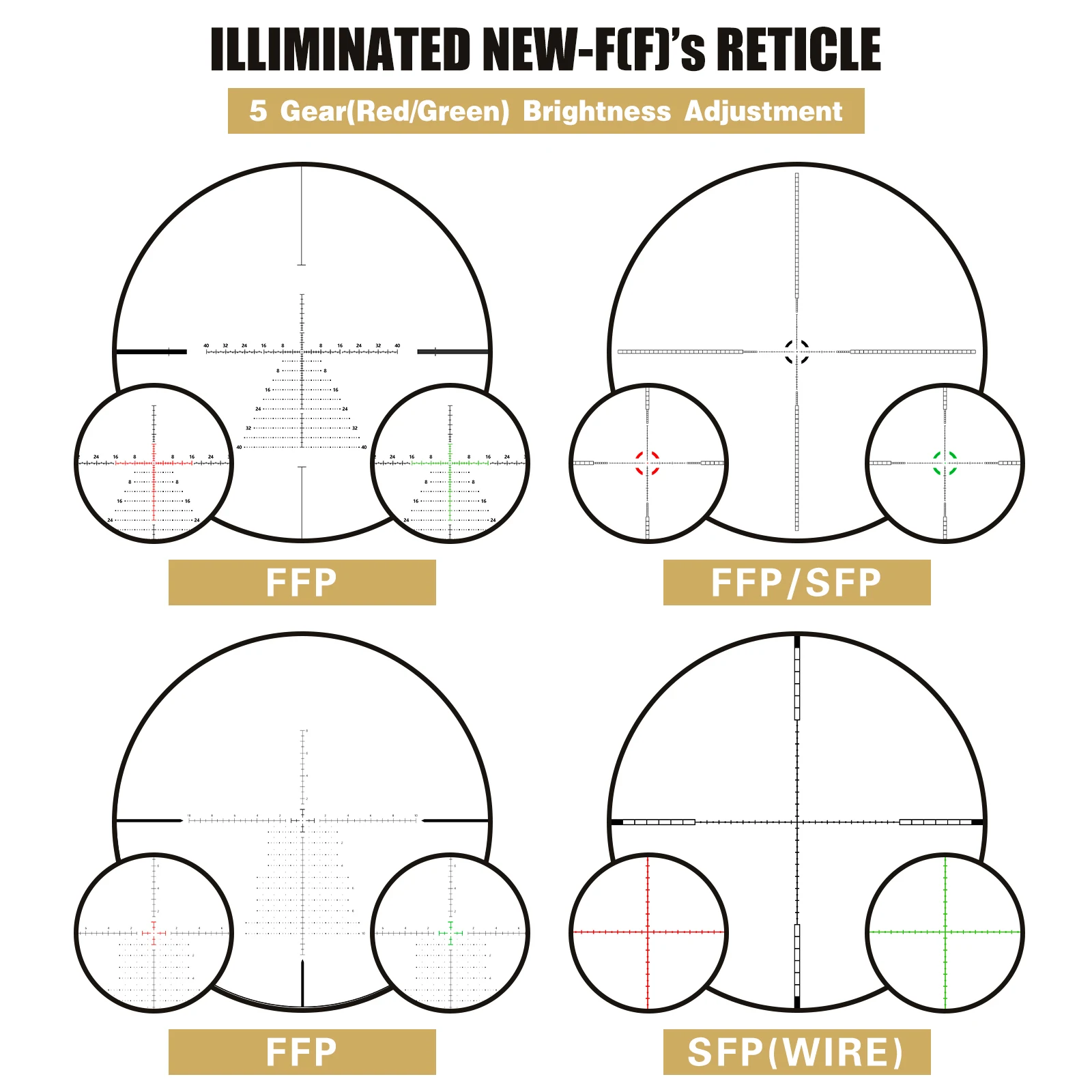 · Opciones FFP/SFP, cuatro opciones Reticle, conmutación roja y verde