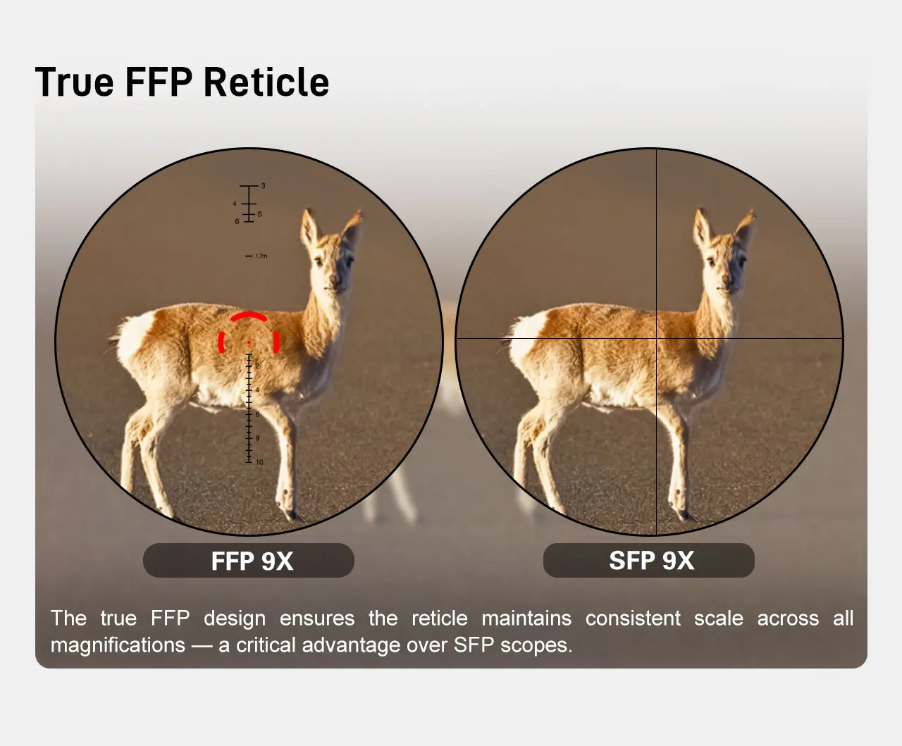 Tubo principal de una pieza de 34 mm:Ofreciendo más del 40% más de rigidez que los tubos tradicionales de 30 mm, proporciona una plataforma sólida como una roca para el sistema óptico, lo que garantiza que el retícula se mantenga perfectamente alineado incluso bajo retroceso pesado y incendio de cartuchos de potencia total.Certificación oficial para resistir el retroceso de.22 LR a.50 BMG.