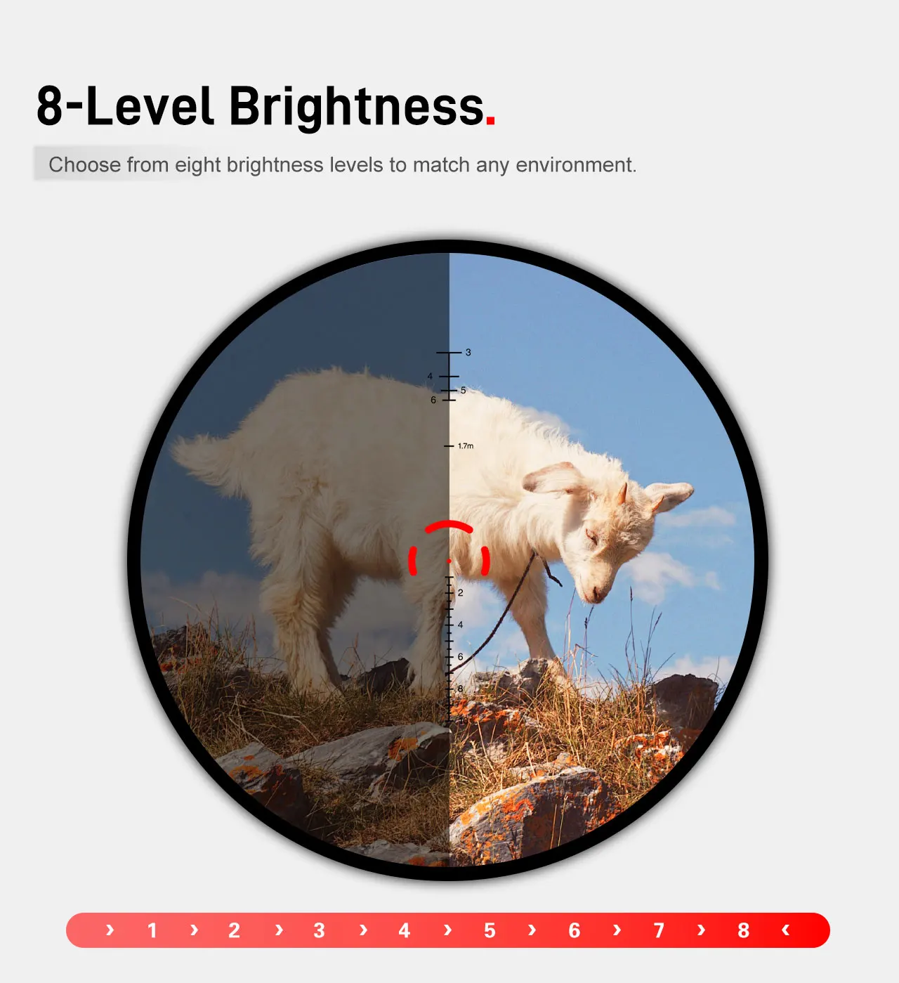 Caza dinámica:Excelente para seguir juegos en movimiento con un cepillo grueso; La iluminación inteligente garantiza una retícula clara en condiciones de poca luz.