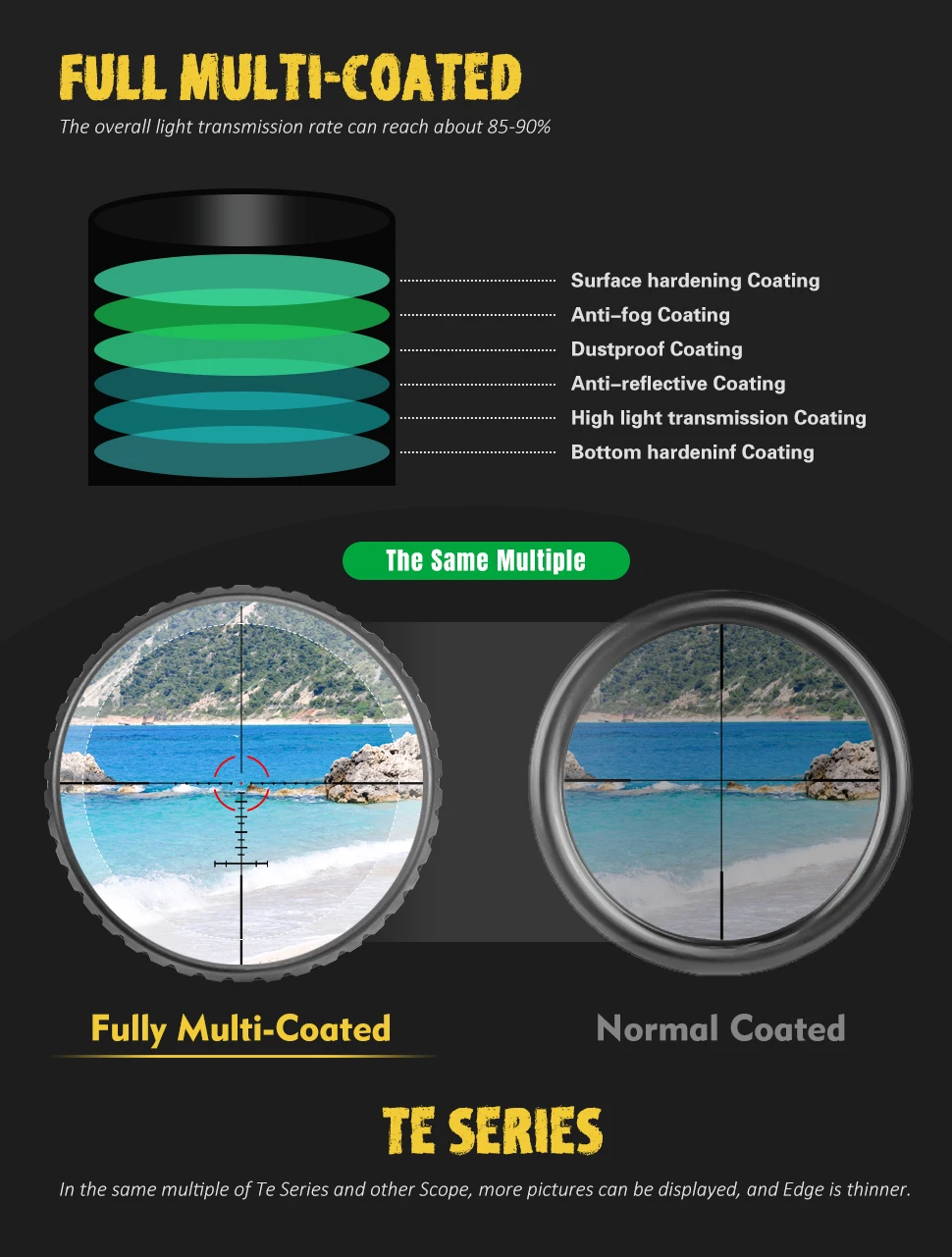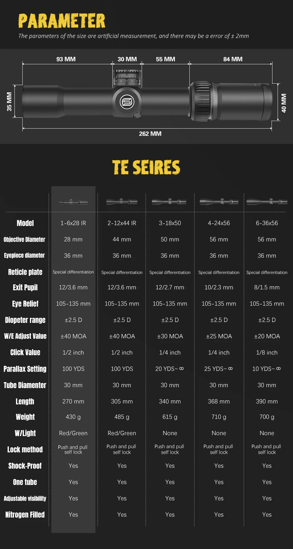 · El resistente material de aluminio 6061T hace que todo el alcance sea más duradero.La excelente durabilidad permite utilizar el visor para el entrenamiento al blanco y la caza diaria durante mucho tiempo sin sufrir daños fácilmente.