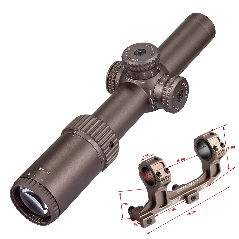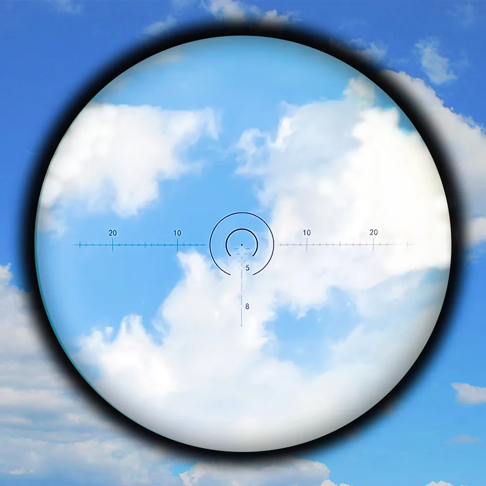 El pequeño círculo es de 5 MiL. El punto central es de 1 MOA.