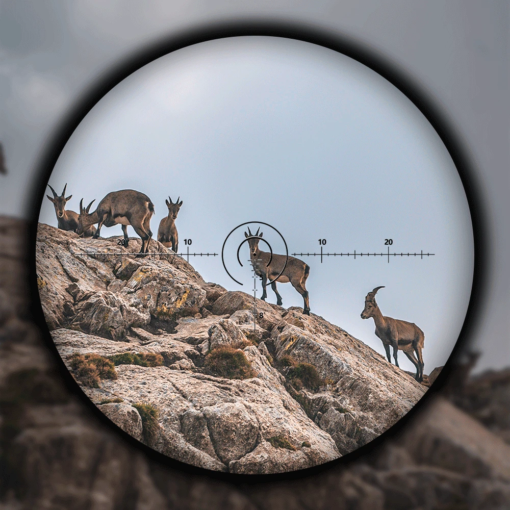 Escala de alcance de la retícula:Esta retícula tiene mucha información útil de referencia de alcance y encuadre.