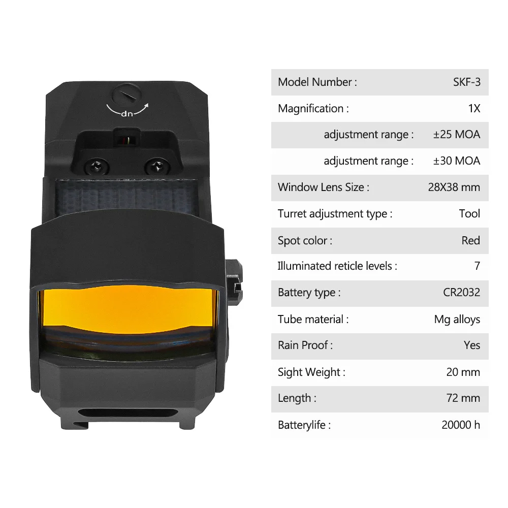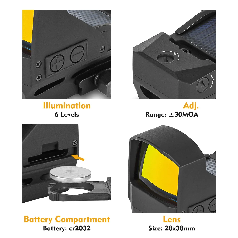 SPINA OPTICS-mira táctica de energía Solar, mira de punto rojo, 7 niveles, iluminado, colimador, AR.223, etc.
