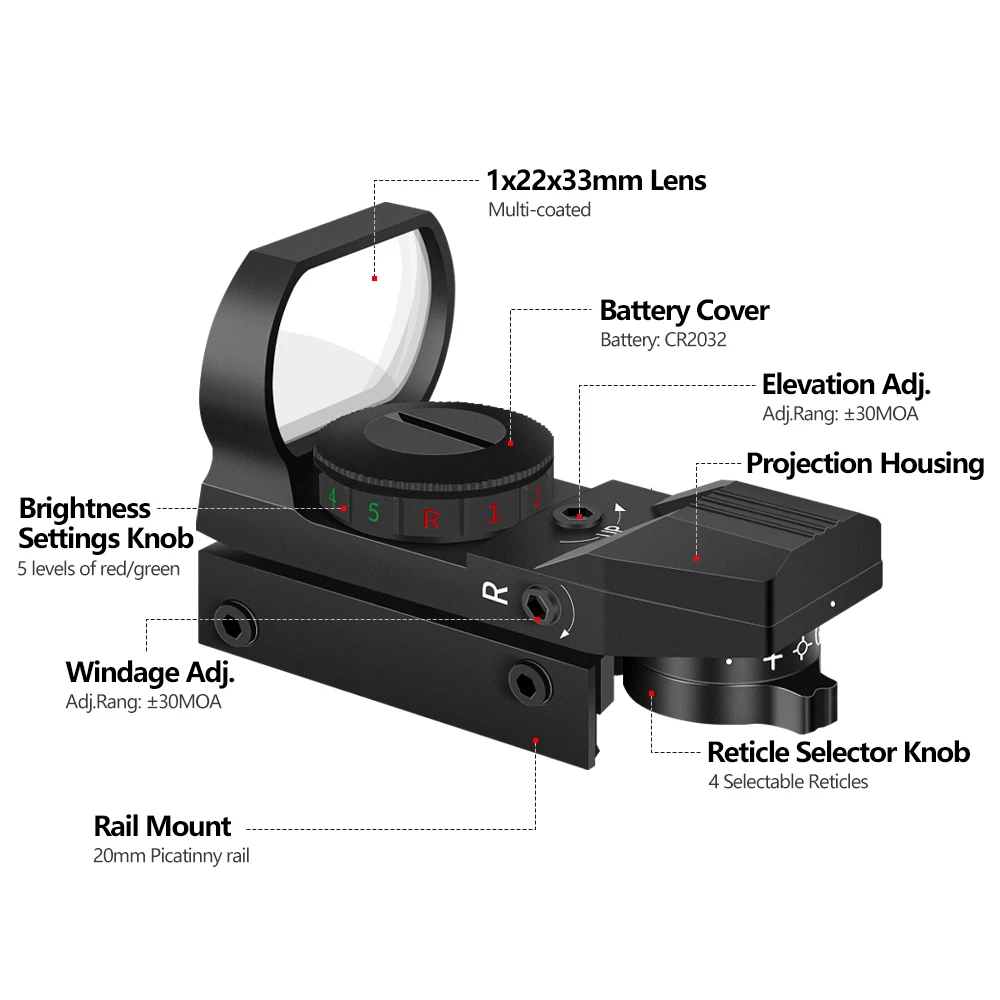 SPINA Optics-mira telescópica táctica holográfica para Airsoft, retícula de punto rojo y verde, Riel de 20mm, 1x22x33, reflejo 4