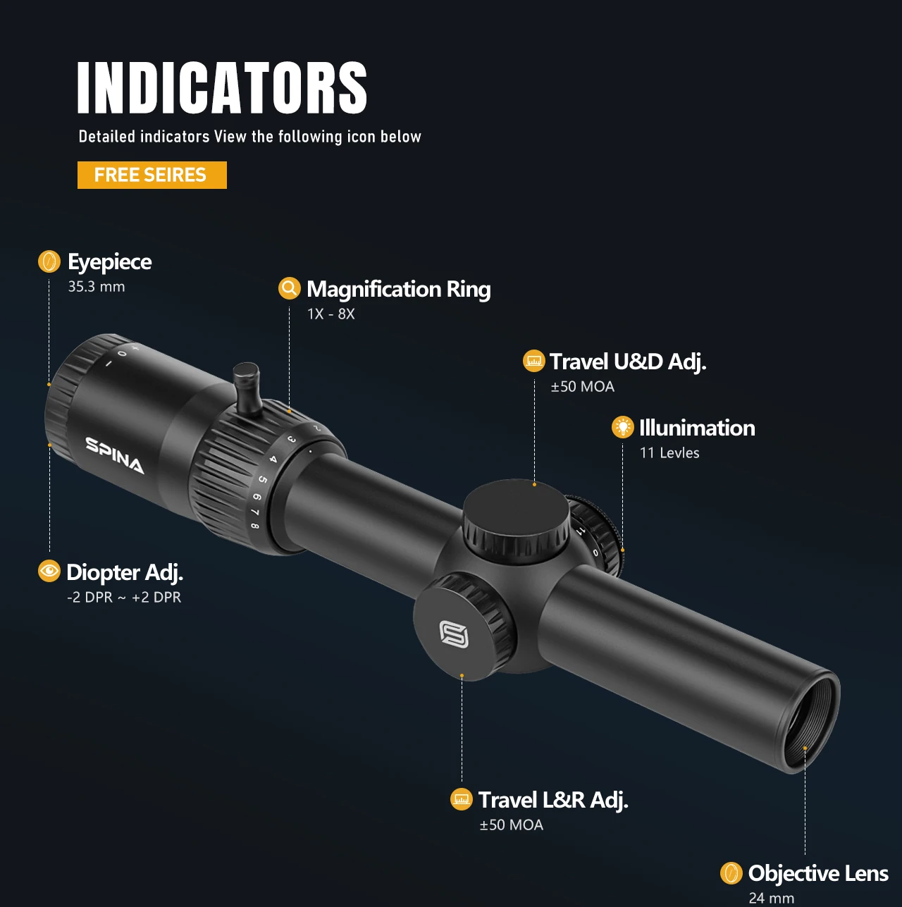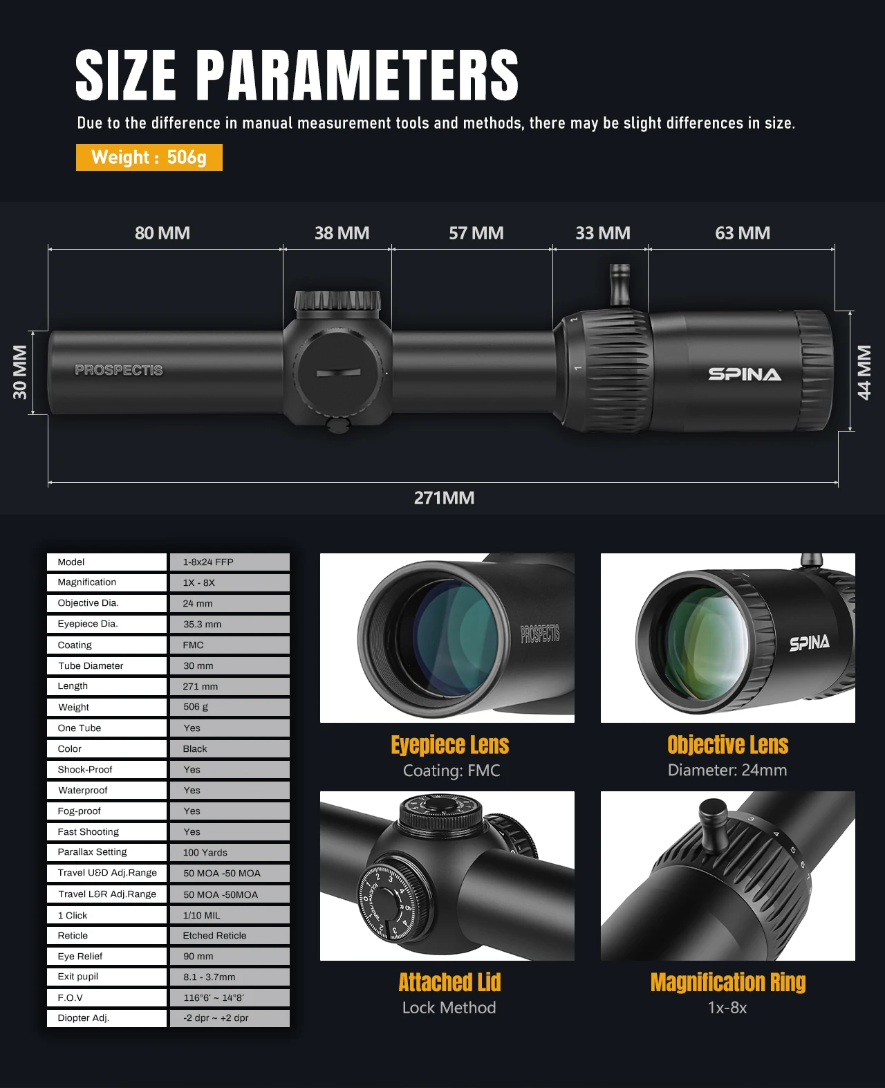 Como producto insignia de SPINA OPTICS, el NovaForce 1-8X24FFP IRredefine la versatilidad para aplicaciones tácticas, de caza y de tiro de precisión con su diseño de nivel profesional, adaptabilidad de múltiples escenarios y durabilidad de nivel militar.A continuación se muestra un análisis detallado de sus características principales: