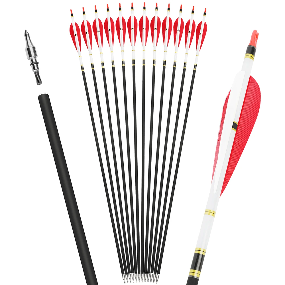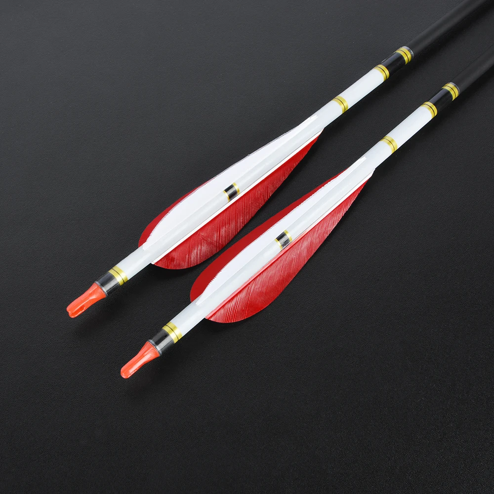 Spine500 2 Rojo 1 Blanco Gota de agua de 5 pulgadas Pluma de pavo Flecha de carbono mixta