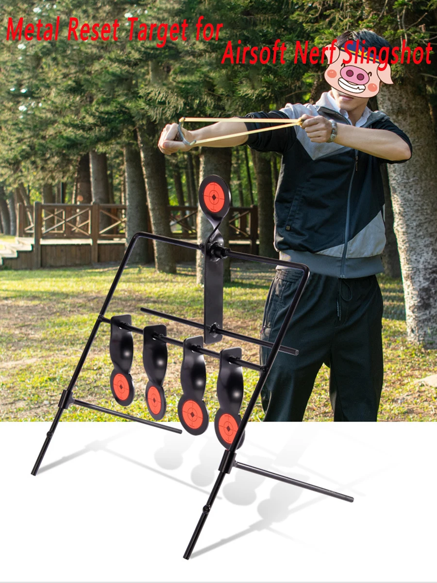 Objetivo giratorio de reinicio automático de acero táctico con 5 objetivos para caza, tiro, Airsoft, pistola de aire, entrenamiento práctica de tirachinas NERF