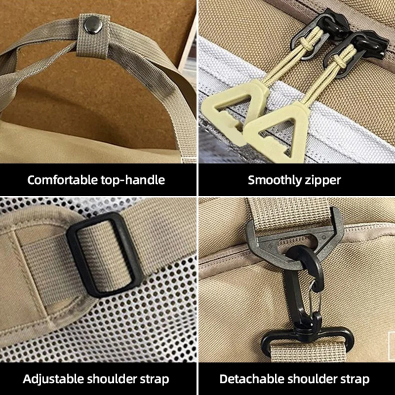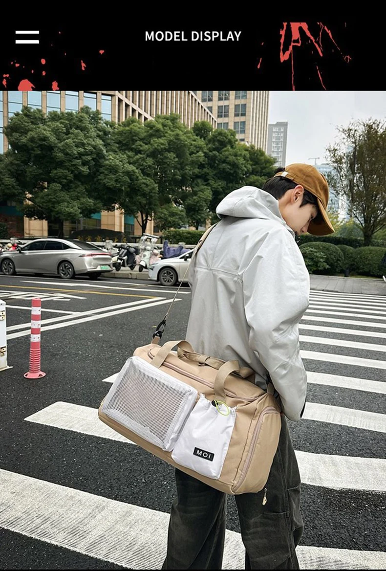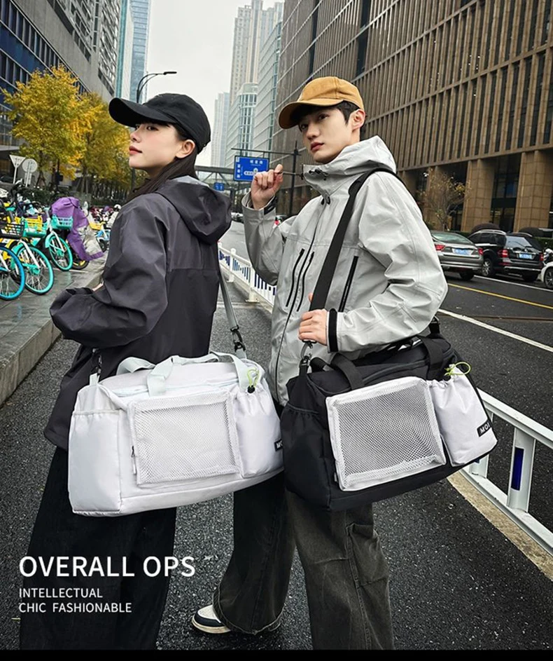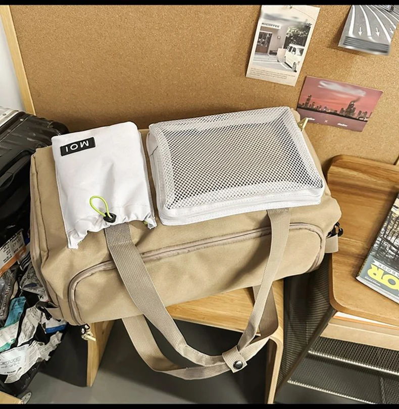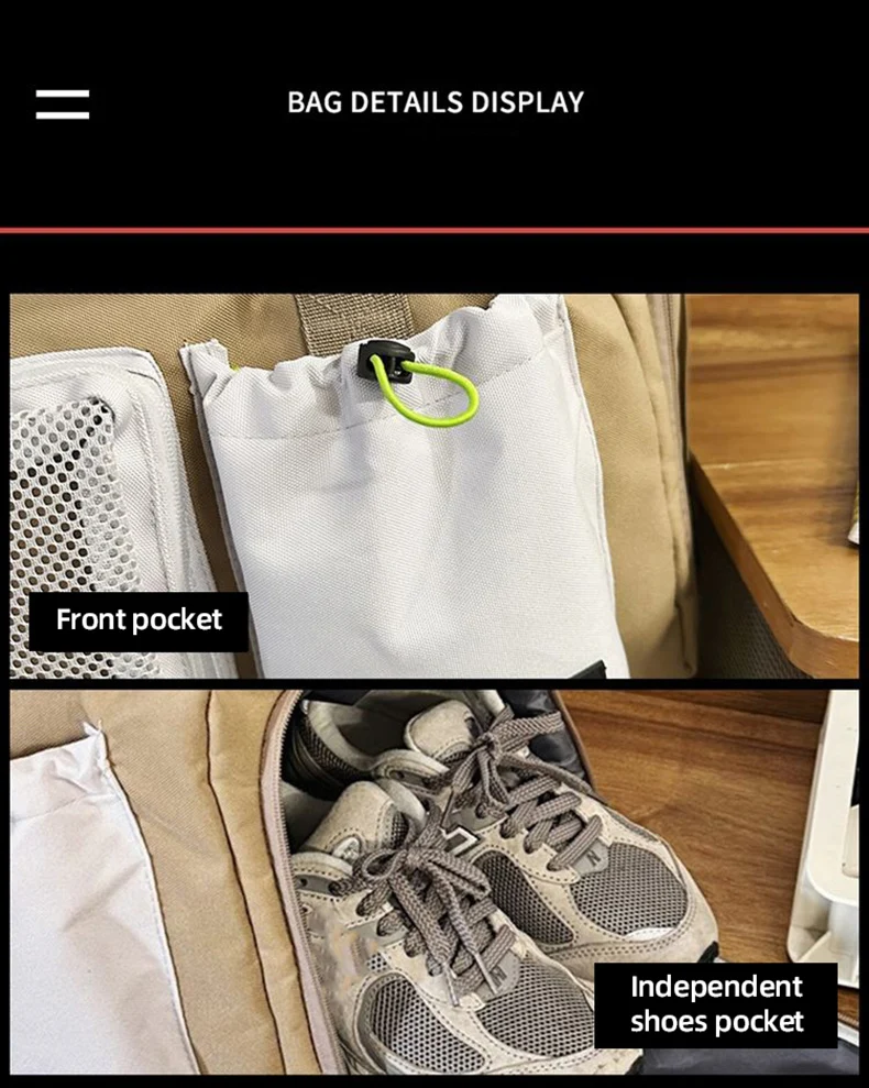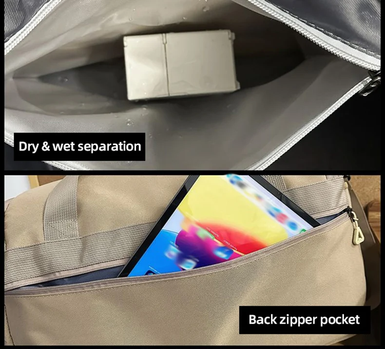 1.Juego de bolsas principales de gran capacidad, bolsillos y bolsillos separadores húmedos y secos incorporados, con compartimento independiente para zapatos