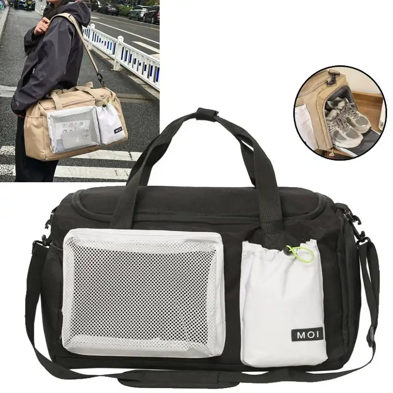 1.Juego de bolsas principales de gran capacidad, bolsillos y bolsillos separadores húmedos y secos incorporados, con compartimento independiente para zapatos