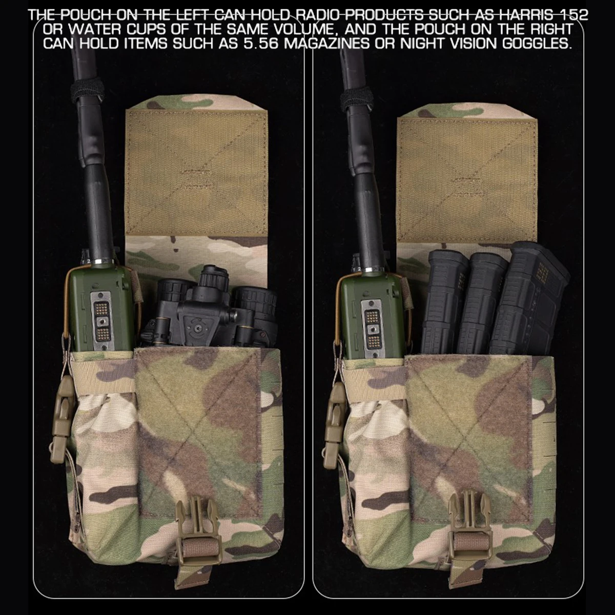 ▶La bolsa de la izquierda puede contener productos de radio como Harris 152 o tazas de agua del mismo volumen. La bolsa de la derecha puede contener artículos como revistas 5,56 o gafas de visión nocturna.