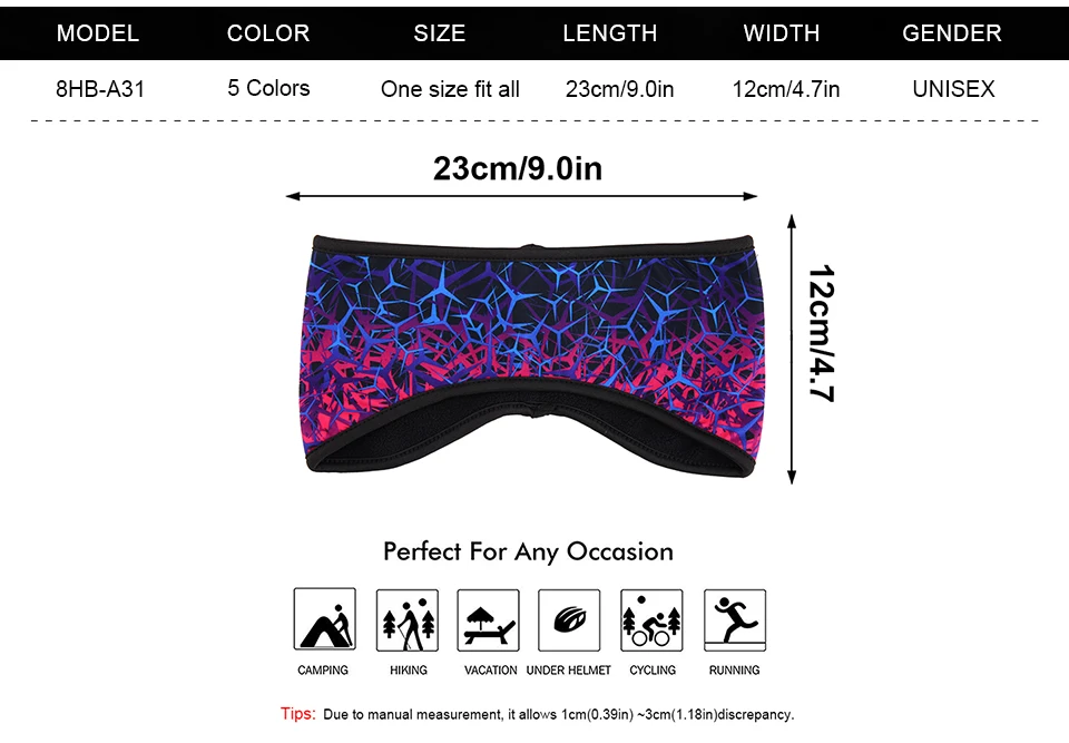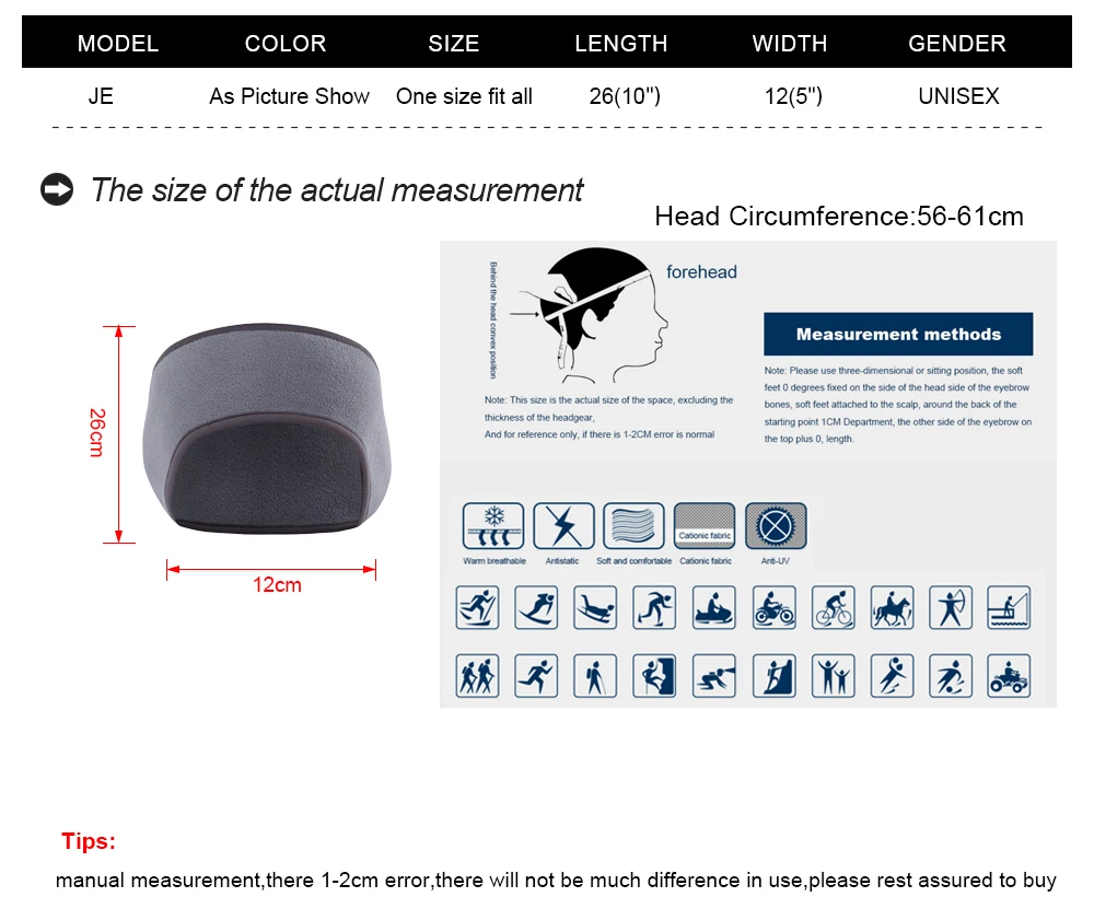 Tejido liso y suave, muy cálido, flexible, fácil de usar, adecuado para la frente, absorbe el sudor, evita que el agua caiga y causa molestias en los ojos.Disfruta del deporte.