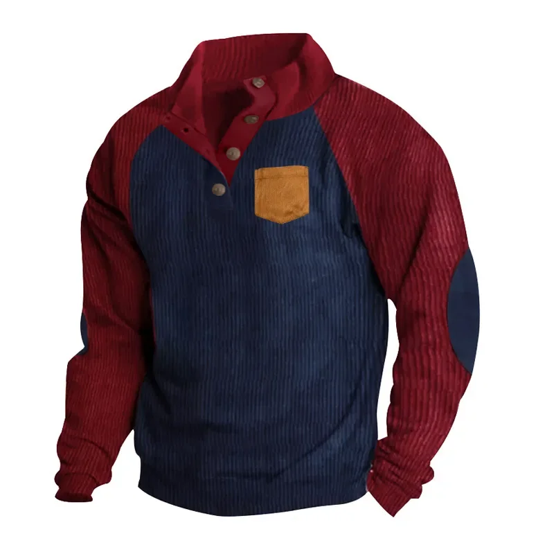 Sudadera Retro para hombre, Color pana, cuello levantado, camisa informal holgada de gran tamaño, Sudadera con capucha a juego, sudadera de retazos para hombre