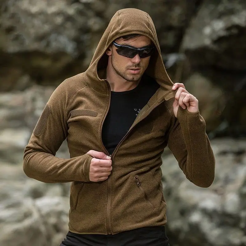 Sudaderas con capucha para hombre, chaqueta de lana ajustada con cremallera, retales sólidos, al aire libre para acampar, senderismo, invierno, novedad