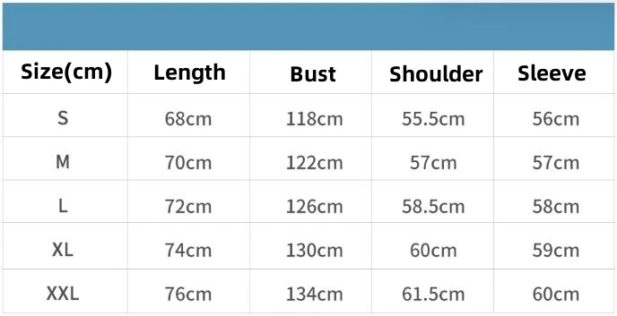 La Tabla de tallas es la siguiente, elige según el tamaño de tu cuerpo. Hay un margen de error de 1-2cm, si no está seguro del tamaño, envíeme la información de su altura, peso y cintura, le ayudaré a elegir la talla correcta.