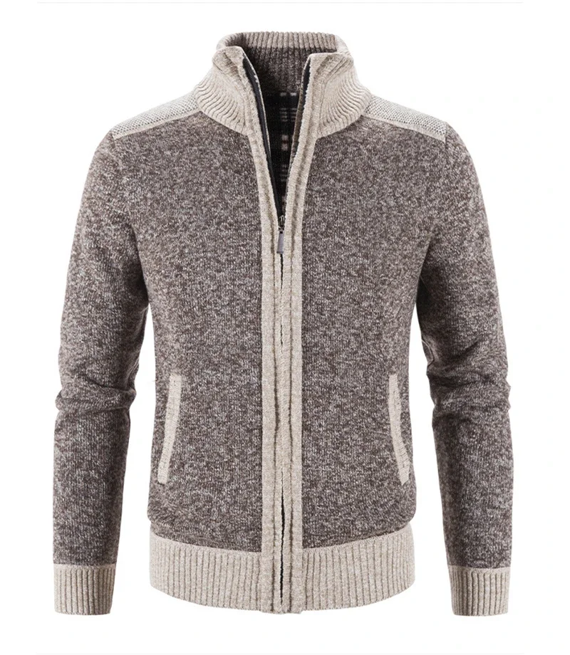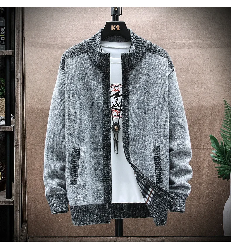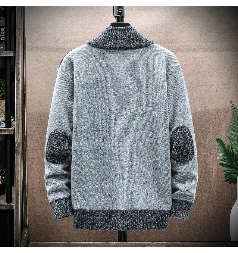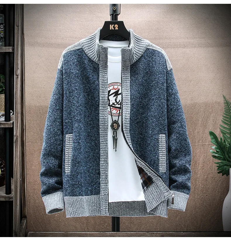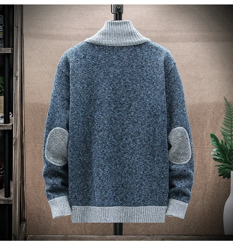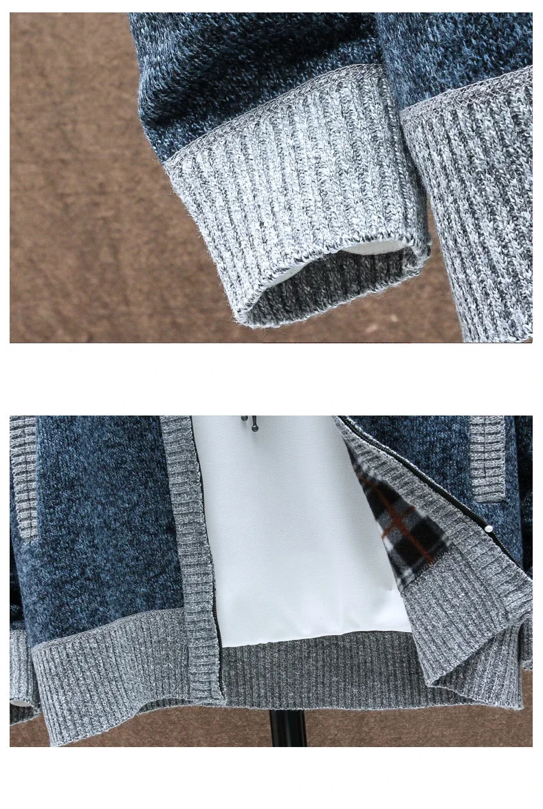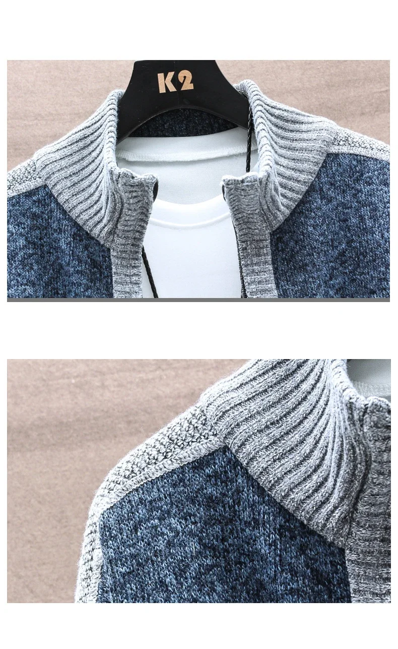 Men's Warm Zipper Sweater Coat Fashion Patchwork Cardigan Male Knitted Sweater Jacket Slim Fit Stand Collar Thick Warm Coats