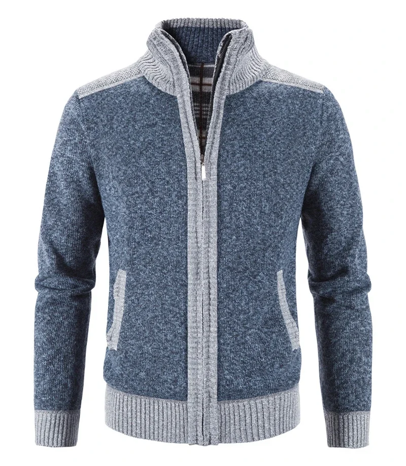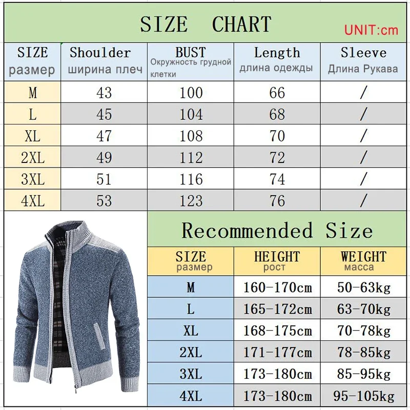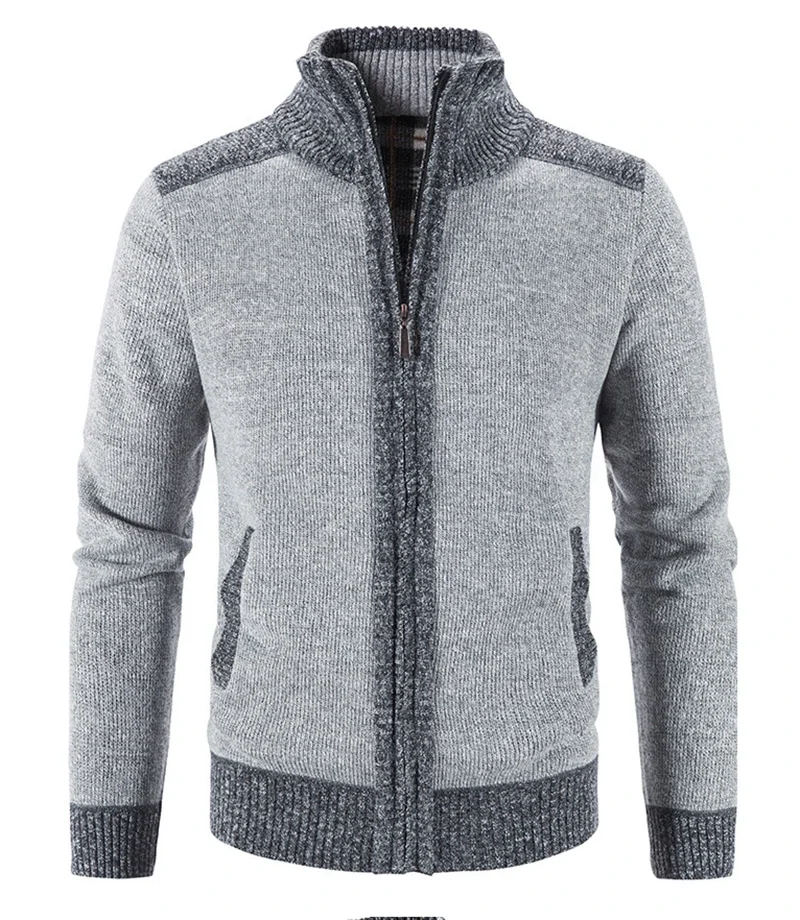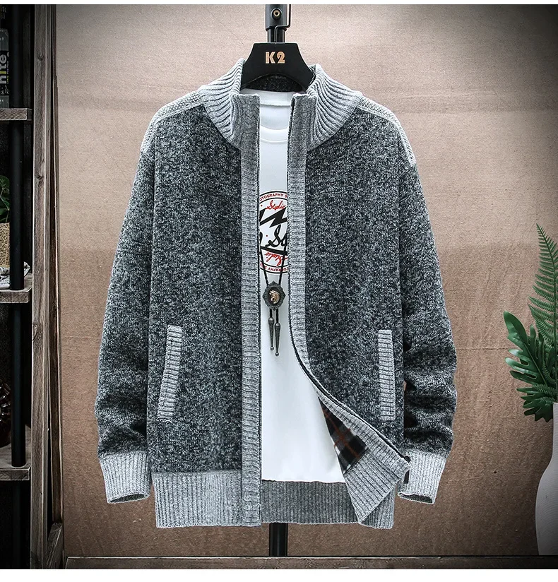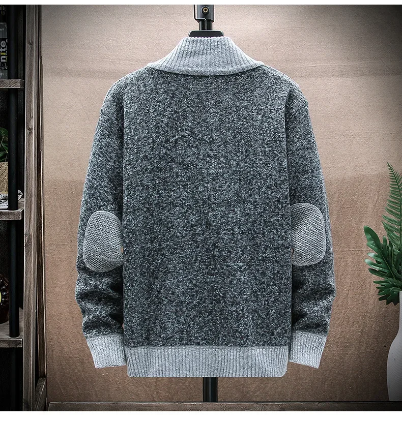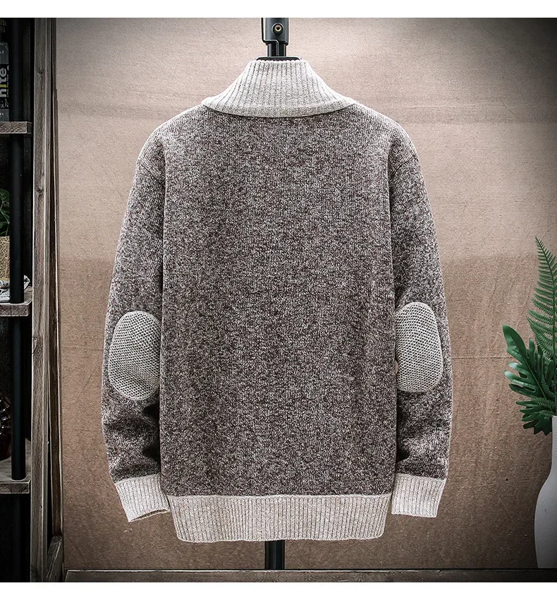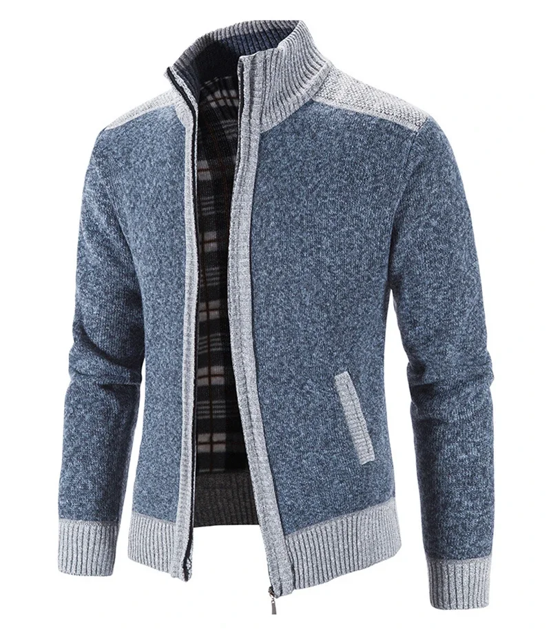 Men's Warm Zipper Sweater Coat Fashion Patchwork Cardigan Male Knitted Sweater Jacket Slim Fit Stand Collar Thick Warm Coats