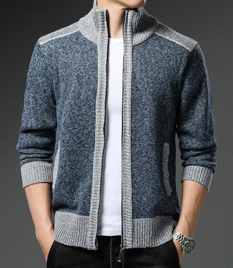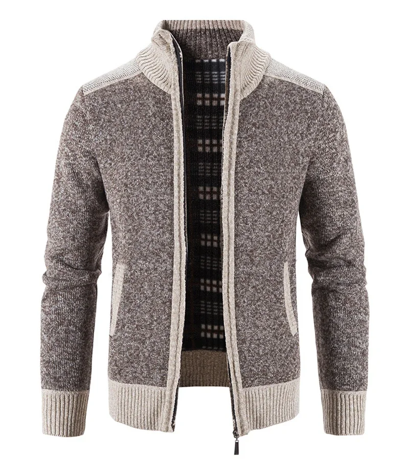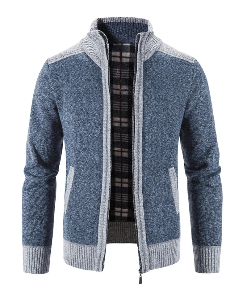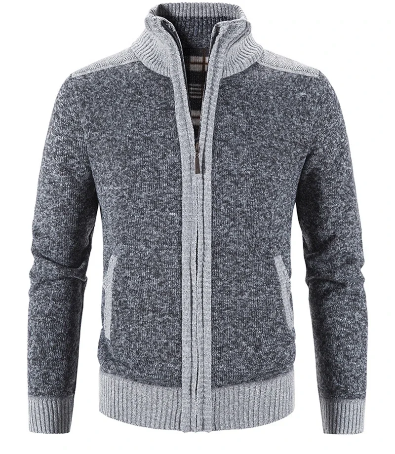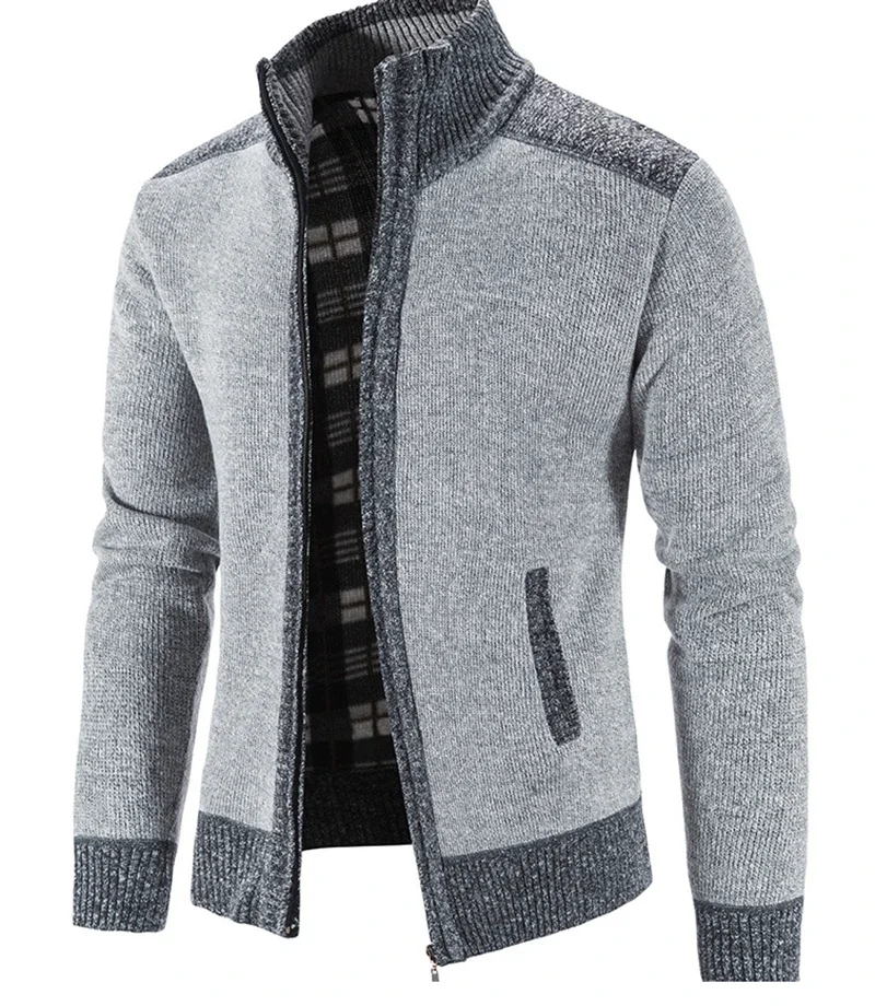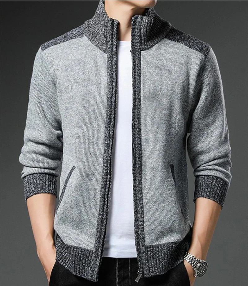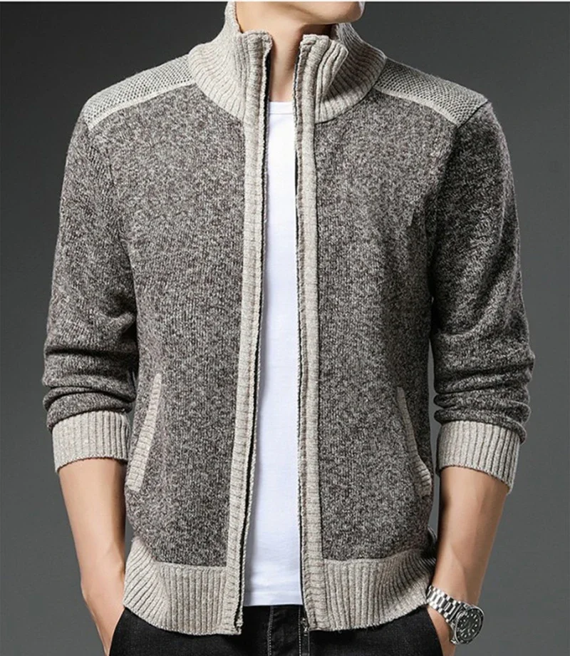 Men's Warm Zipper Sweater Coat Fashion Patchwork Cardigan Male Knitted Sweater Jacket Slim Fit Stand Collar Thick Warm Coats