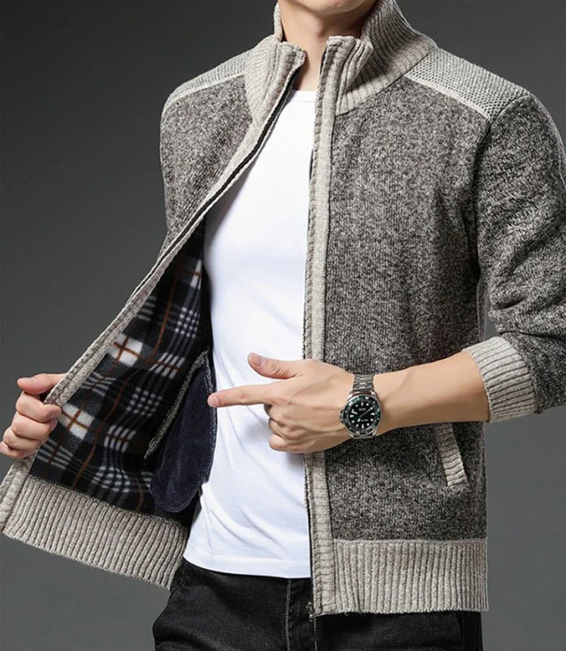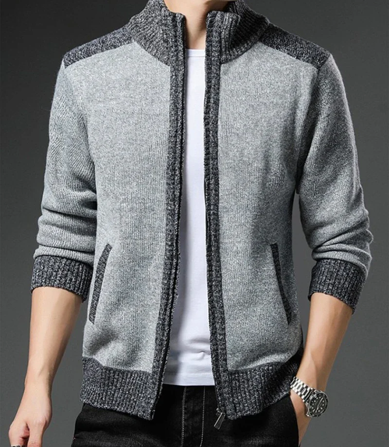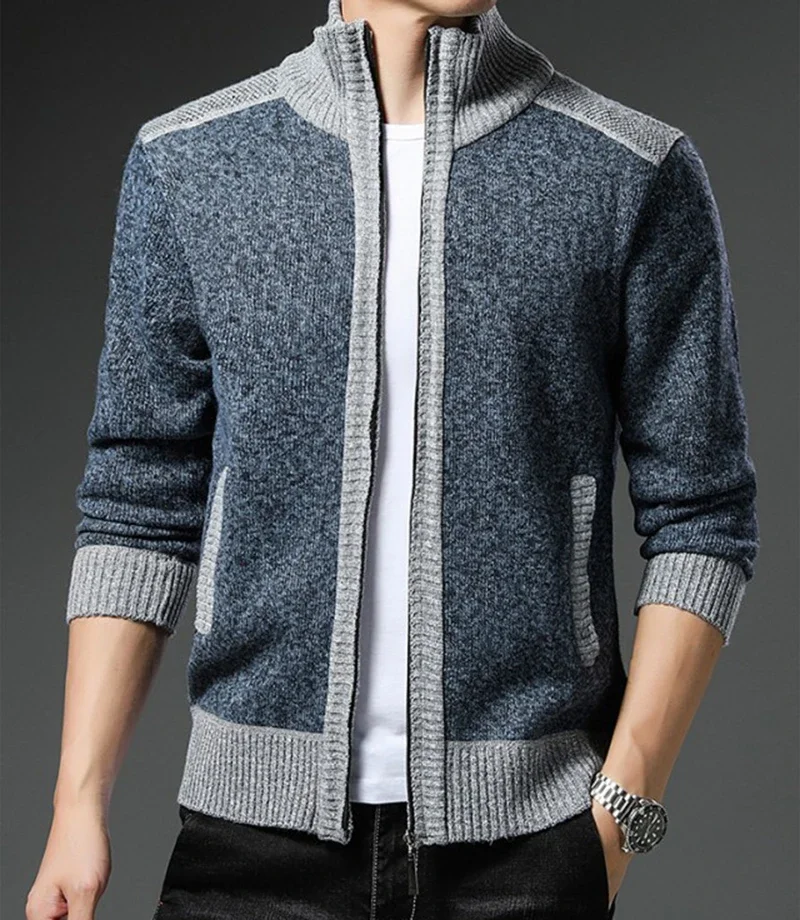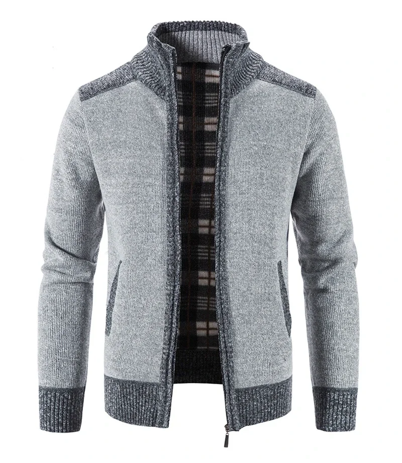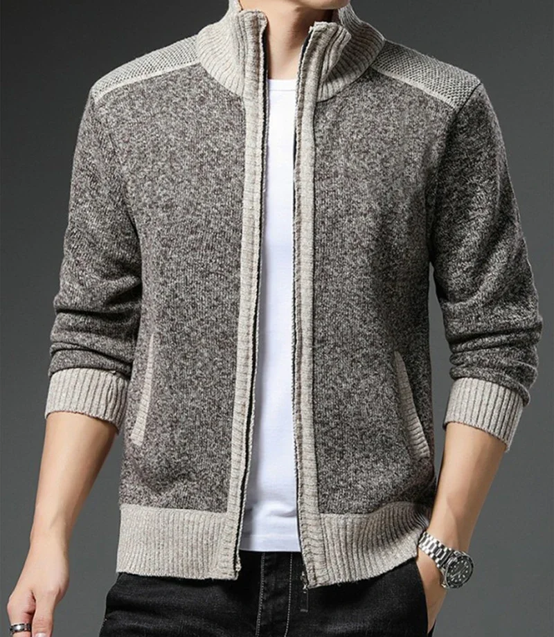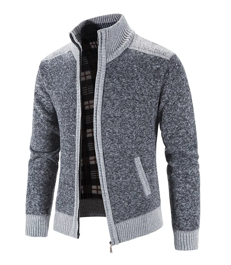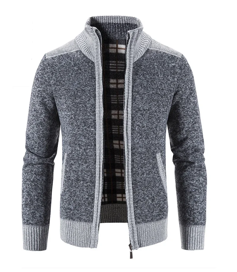 Men's Warm Zipper Sweater Coat Fashion Patchwork Cardigan Male Knitted Sweater Jacket Slim Fit Stand Collar Thick Warm Coats