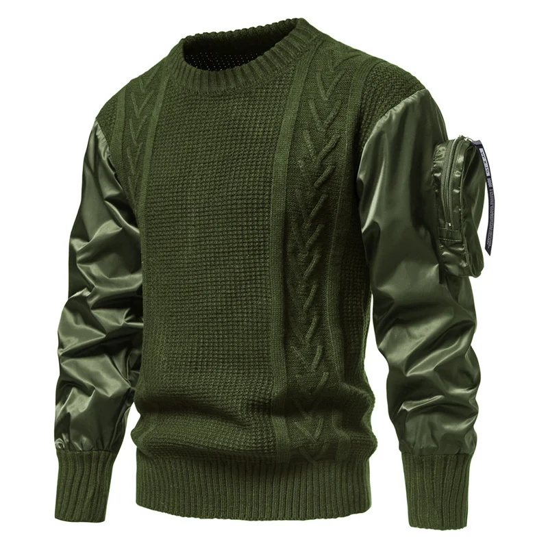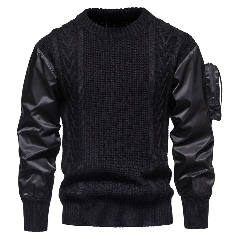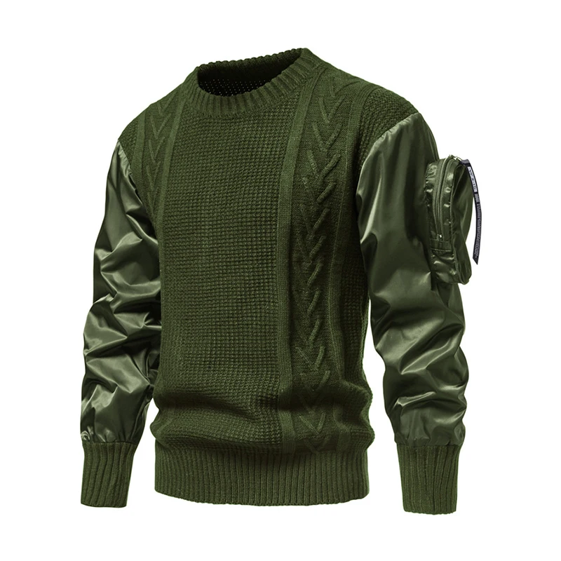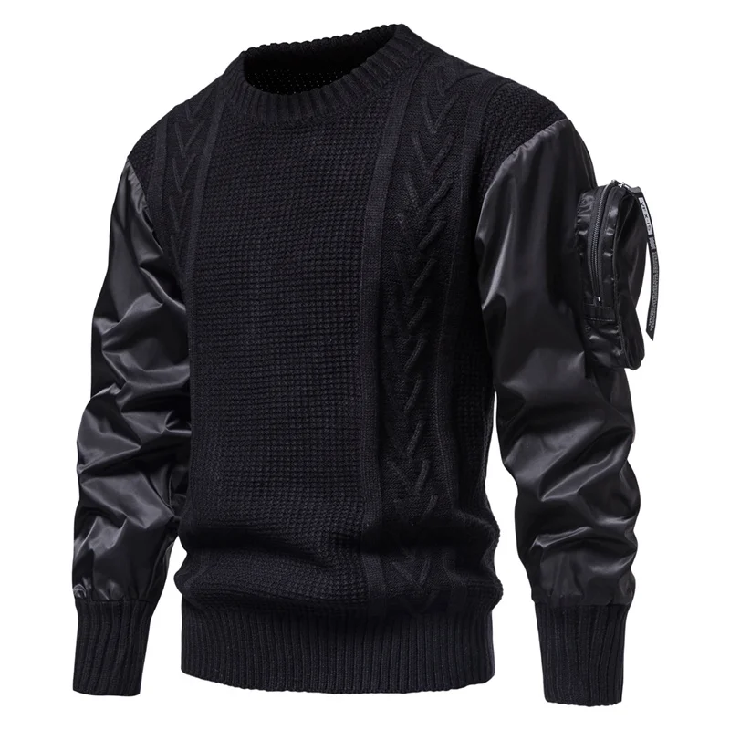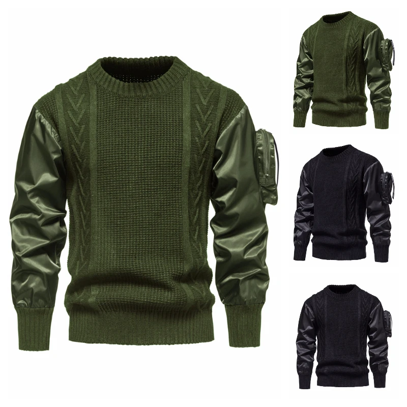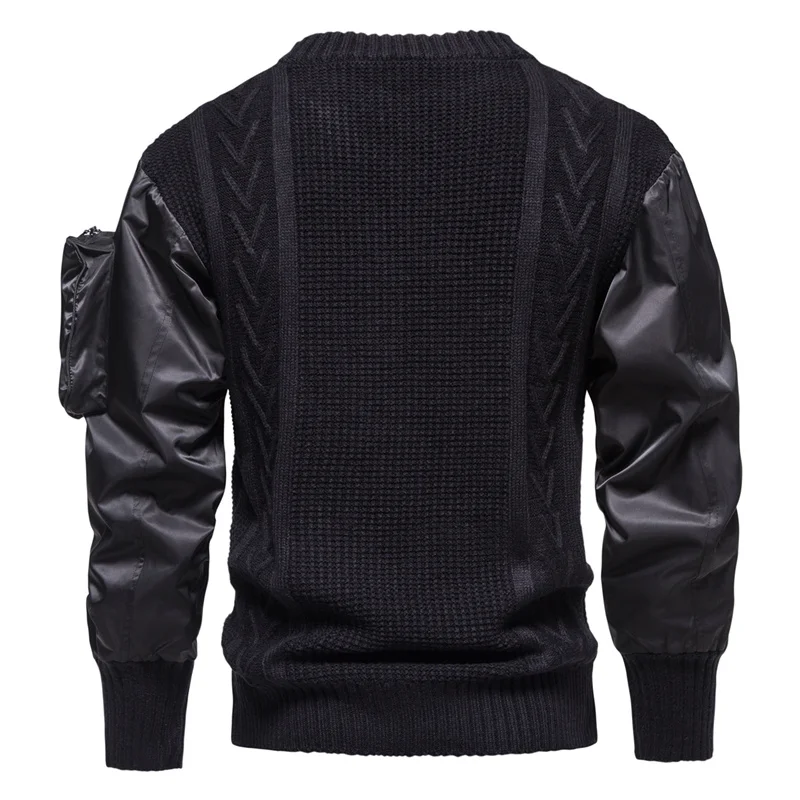 Suéter de cuello redondo de Color tridimensional, empalme de personalidad, diseño de moda europea y americana, manga con bolsillo