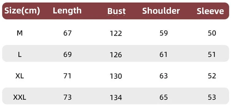La Tabla de tallas es la siguiente, elige según el tamaño de tu cuerpo. Hay un margen de error de 1-2cm, si no está seguro del tamaño, envíeme la información de su altura, peso y cintura, te ayudaré a elegir la talla correcta.