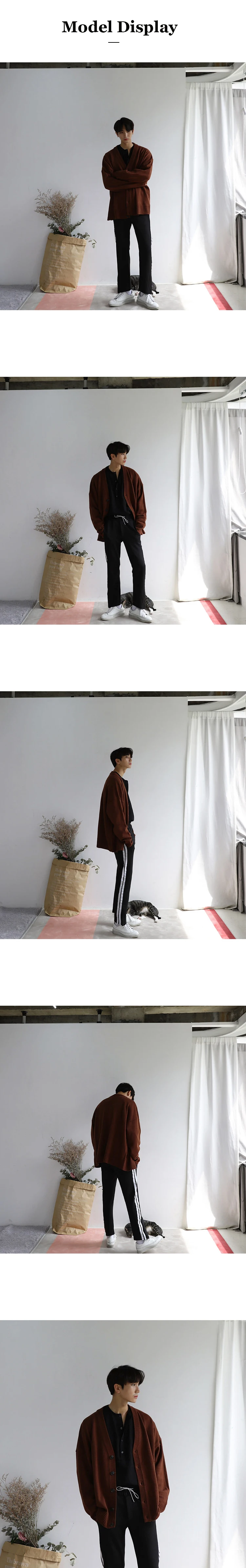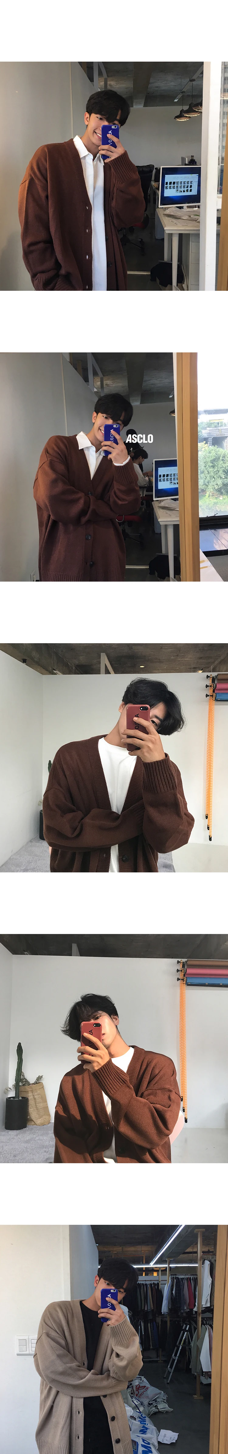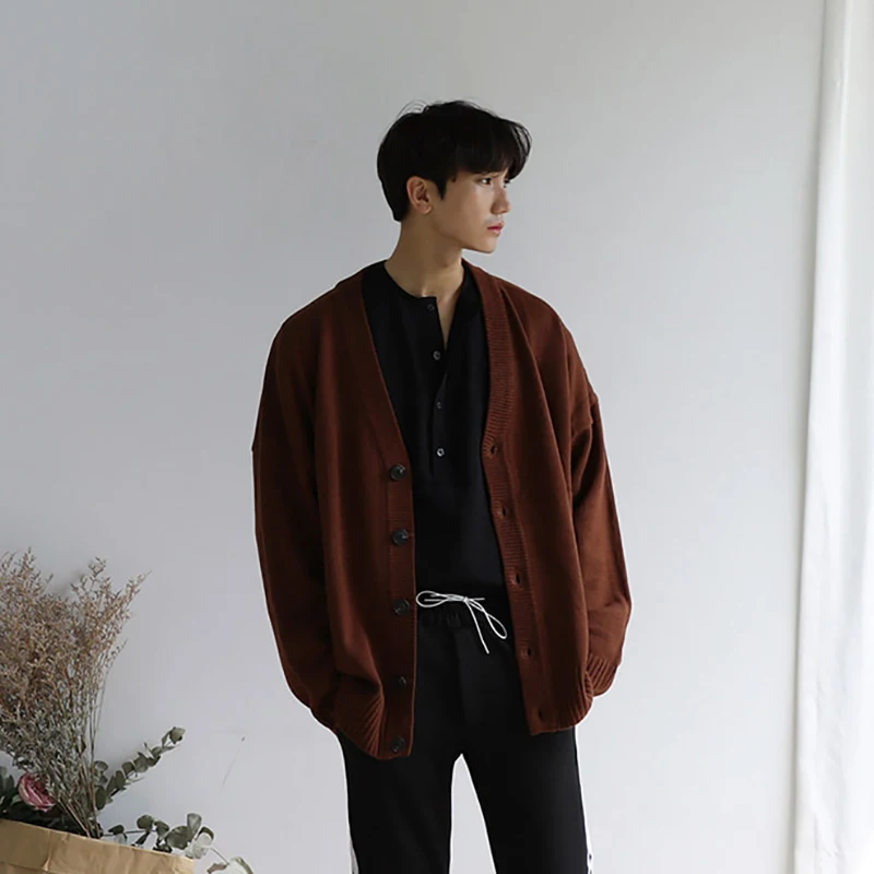 Suéteres de punto de un solo pecho con cuello en V para hombres, cárdigan de Color sólido, ropa de hombre, abrigo, chaqueta lisa, suéter de calle alta de otoño