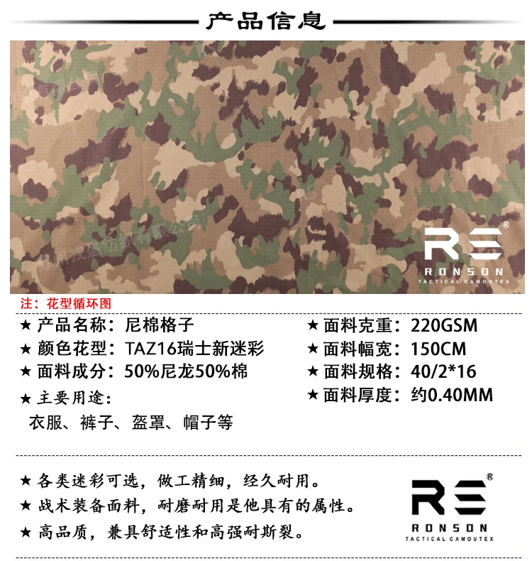 Suiza TAZ16 tela a cuadros de algodón de camuflaje ropa de trabajo táctica tela de cubierta de casco, correas de correa de superficie de lana con gancho de 10cm