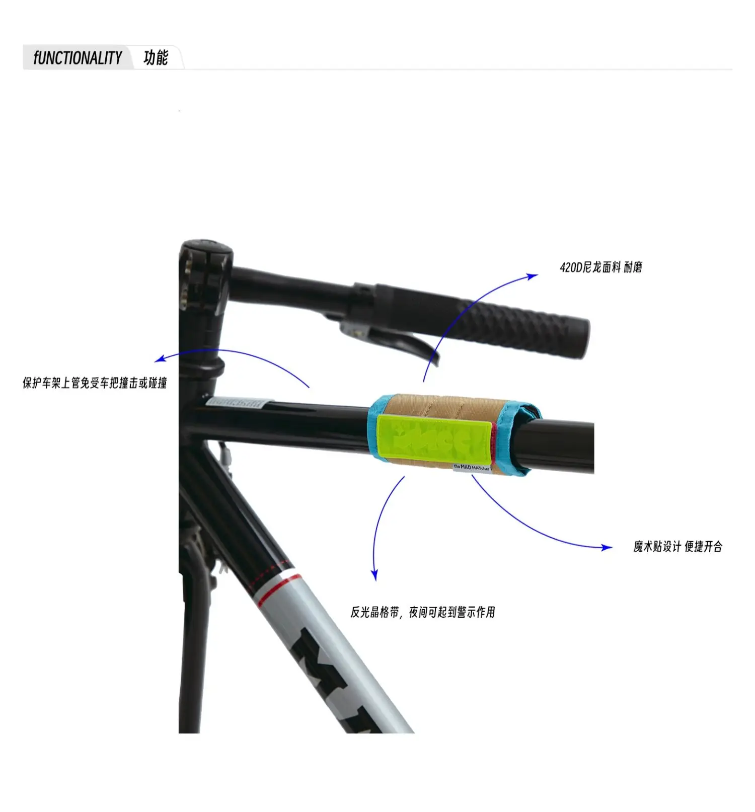 Sujetador de gancho y bucle reflectante para marco de bicicleta, cubierta protectora para tubo de manillar